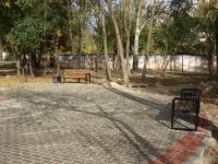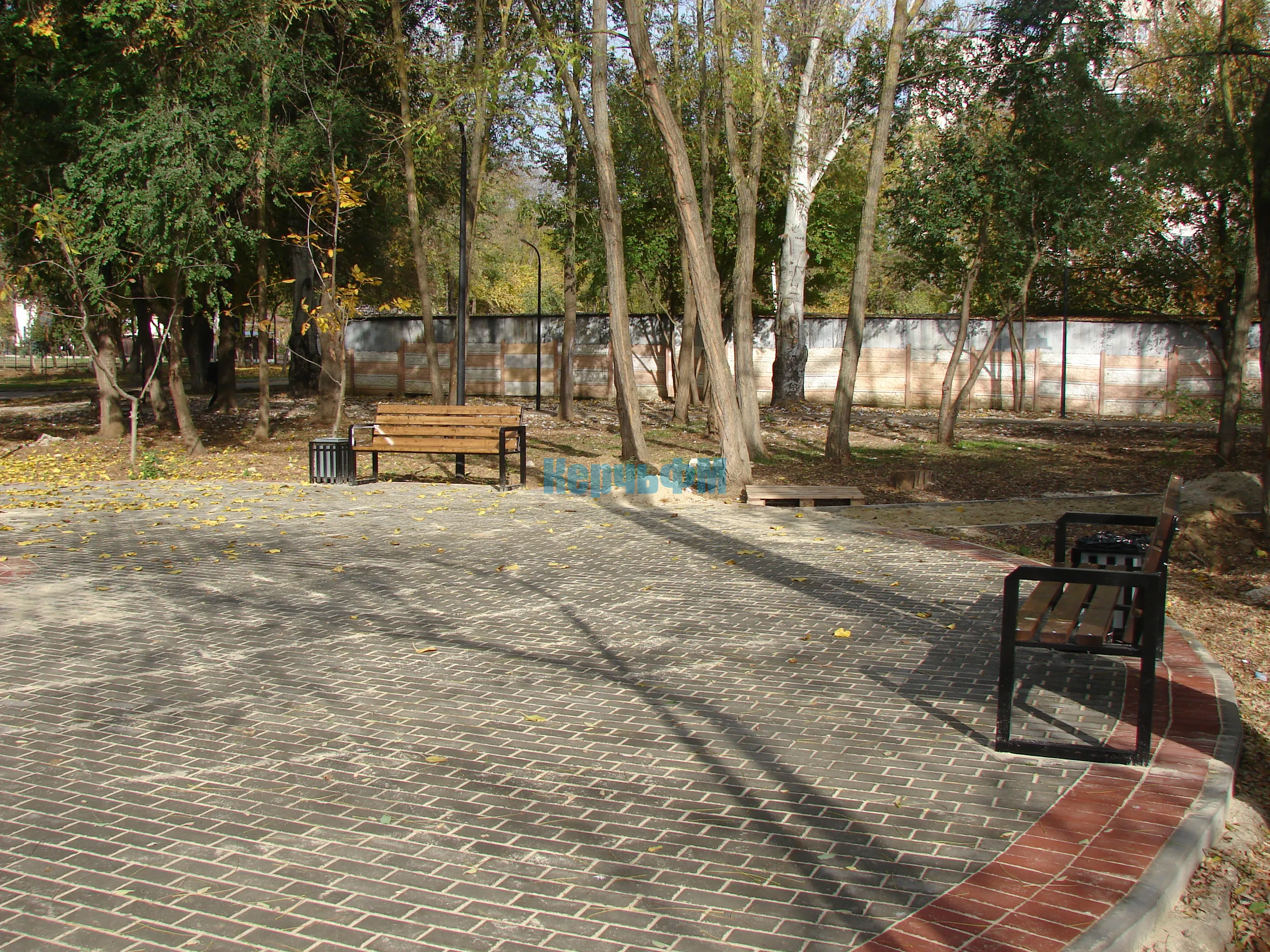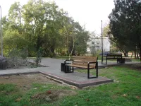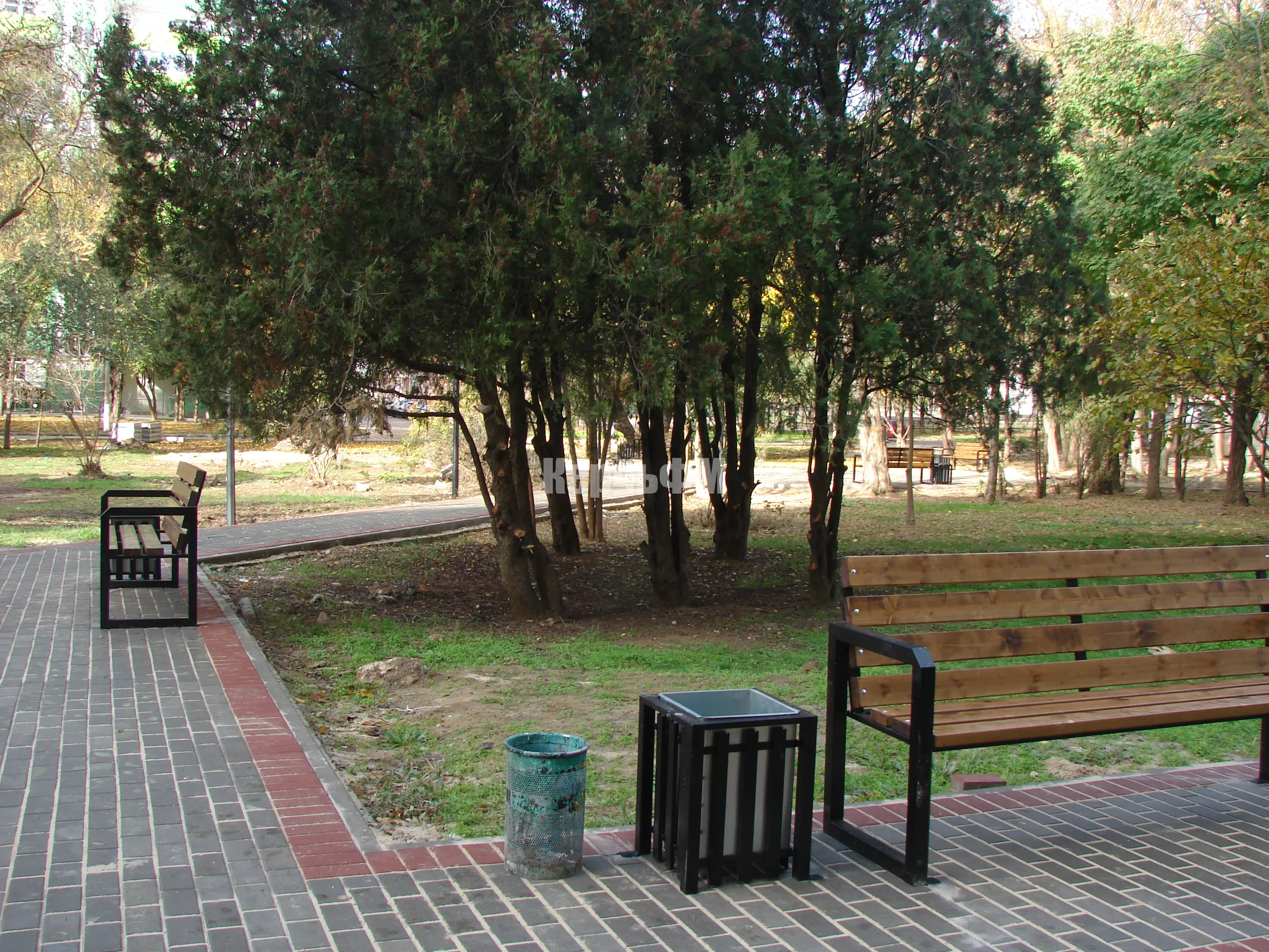 Здесь, а также вдоль центральной аллеи установлены лавочки и мусорные урны.