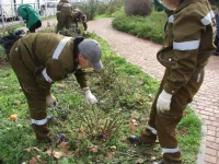 Специалисты керченской Службы городского хозяйства проводили сегодня обрезку роз в сквере Воссоединения, где их высажено достаточно много.