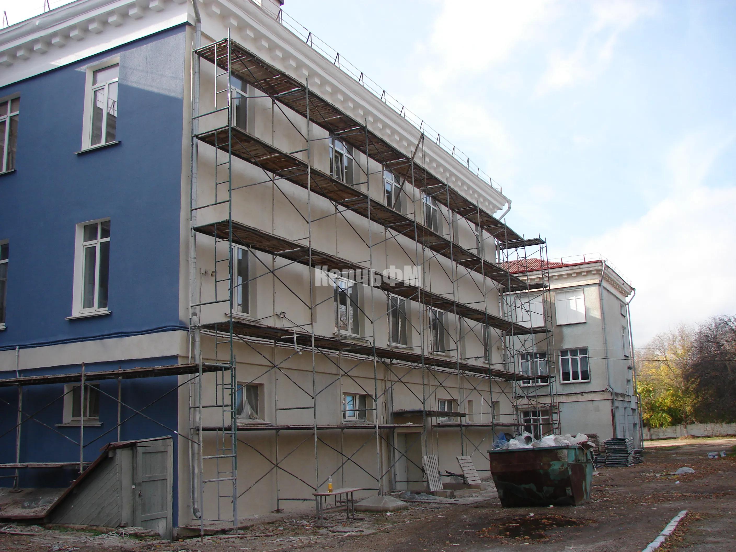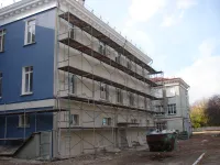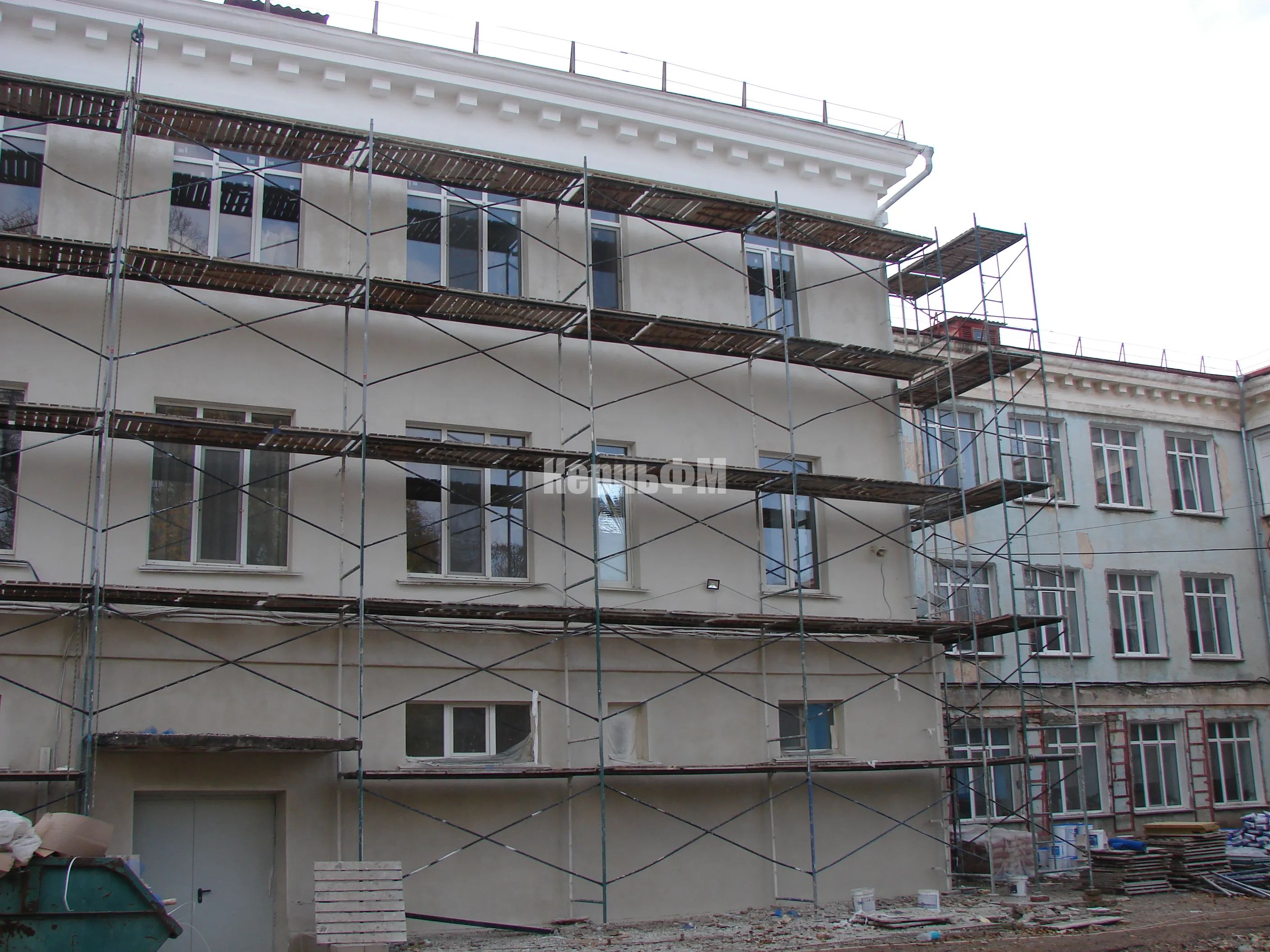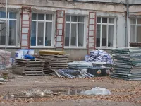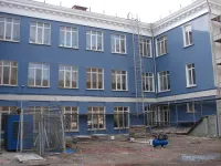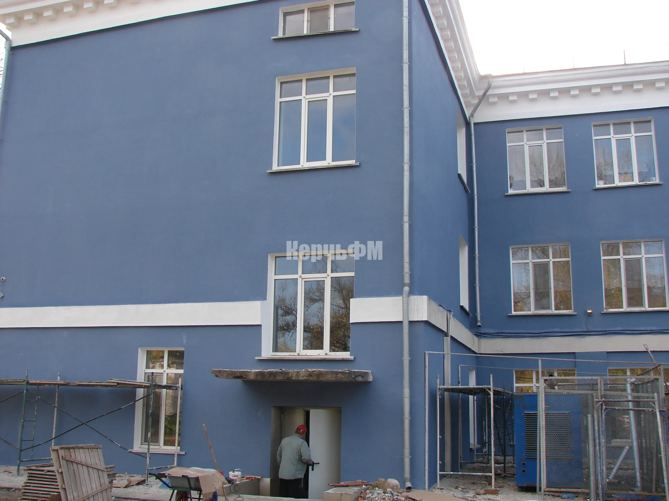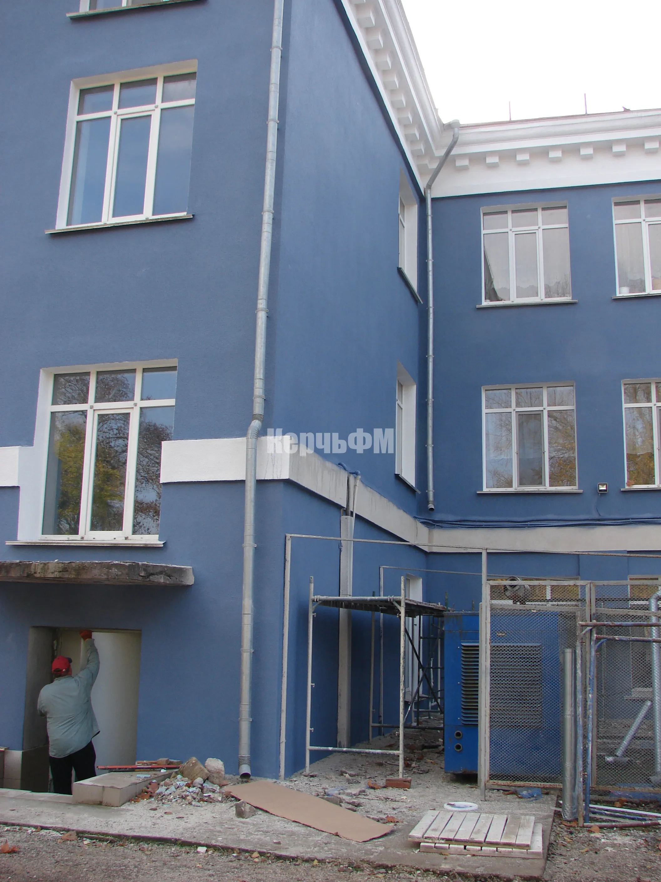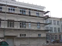 Затем подрядные рабочие приступили к ремонту фасада основного здания.