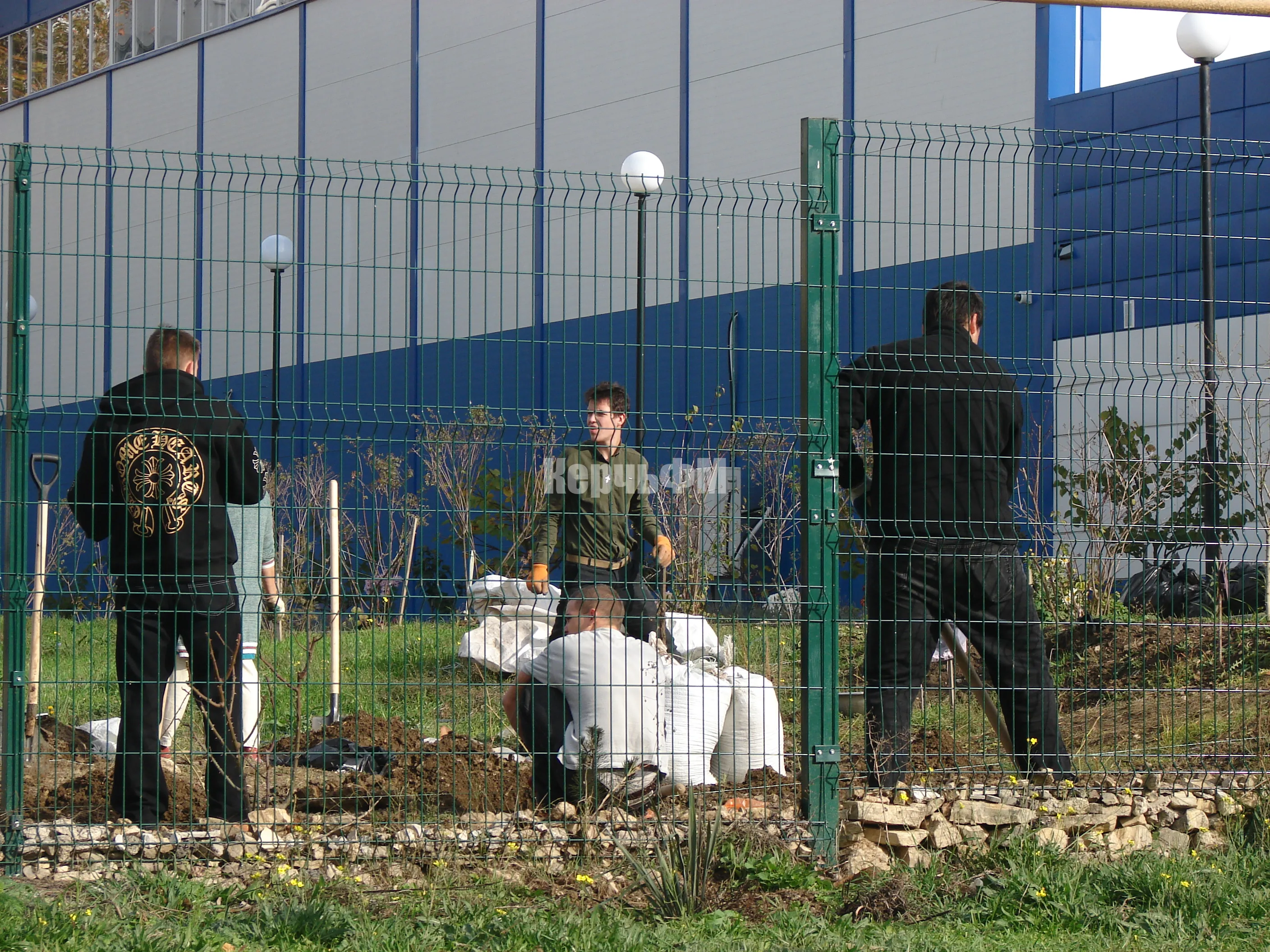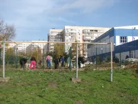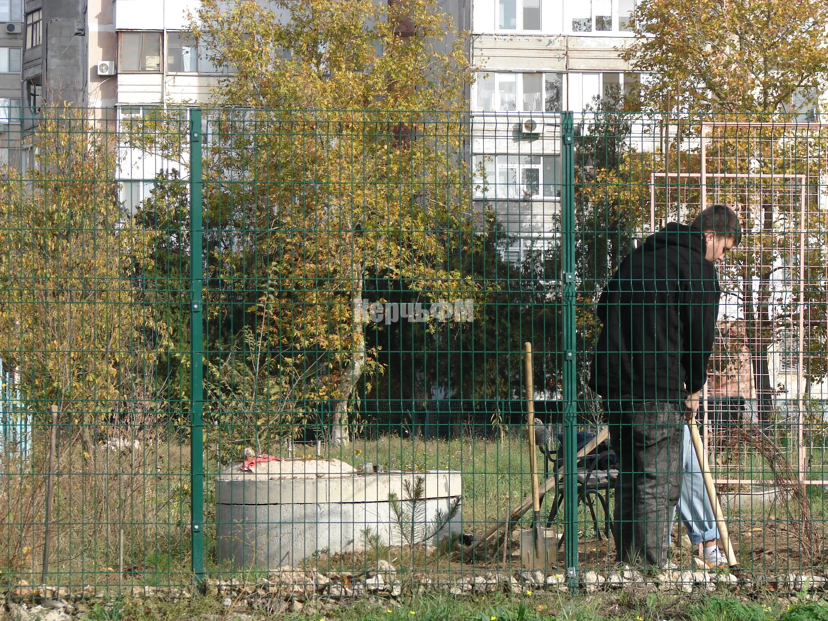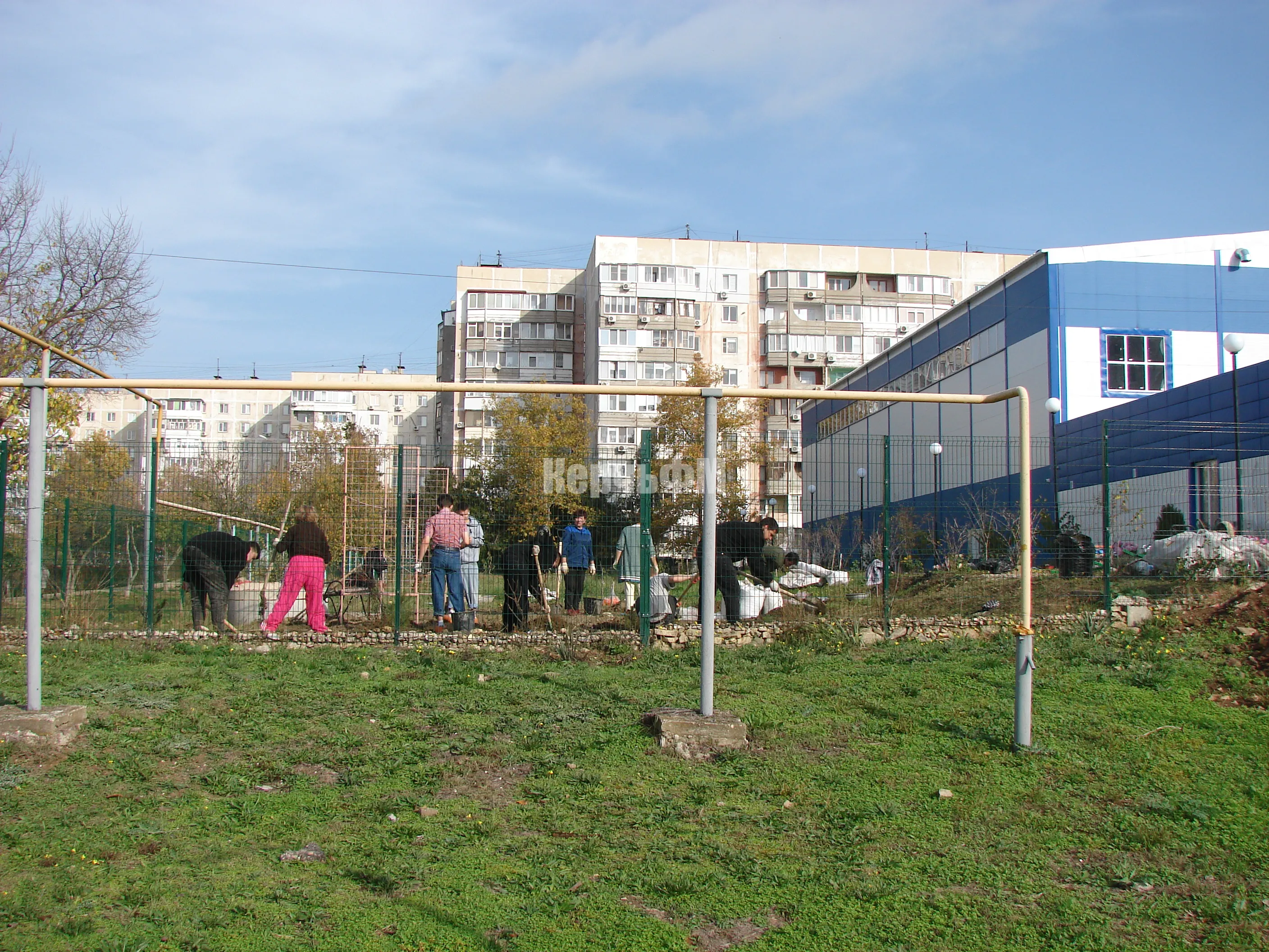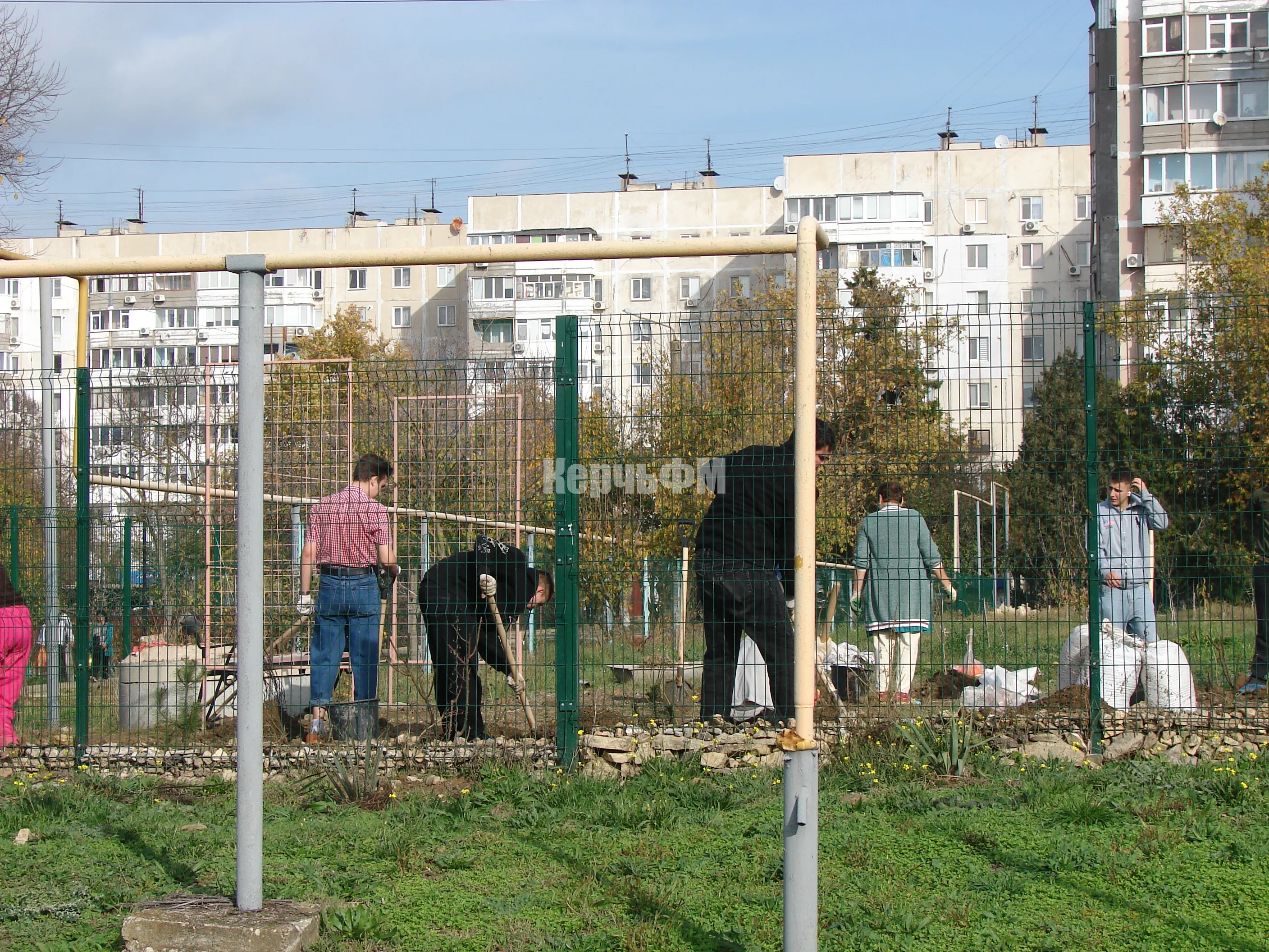 На огороженной территории школы начали высаживать саженцы хвойных пород деревьев, передает КерчьФМ.