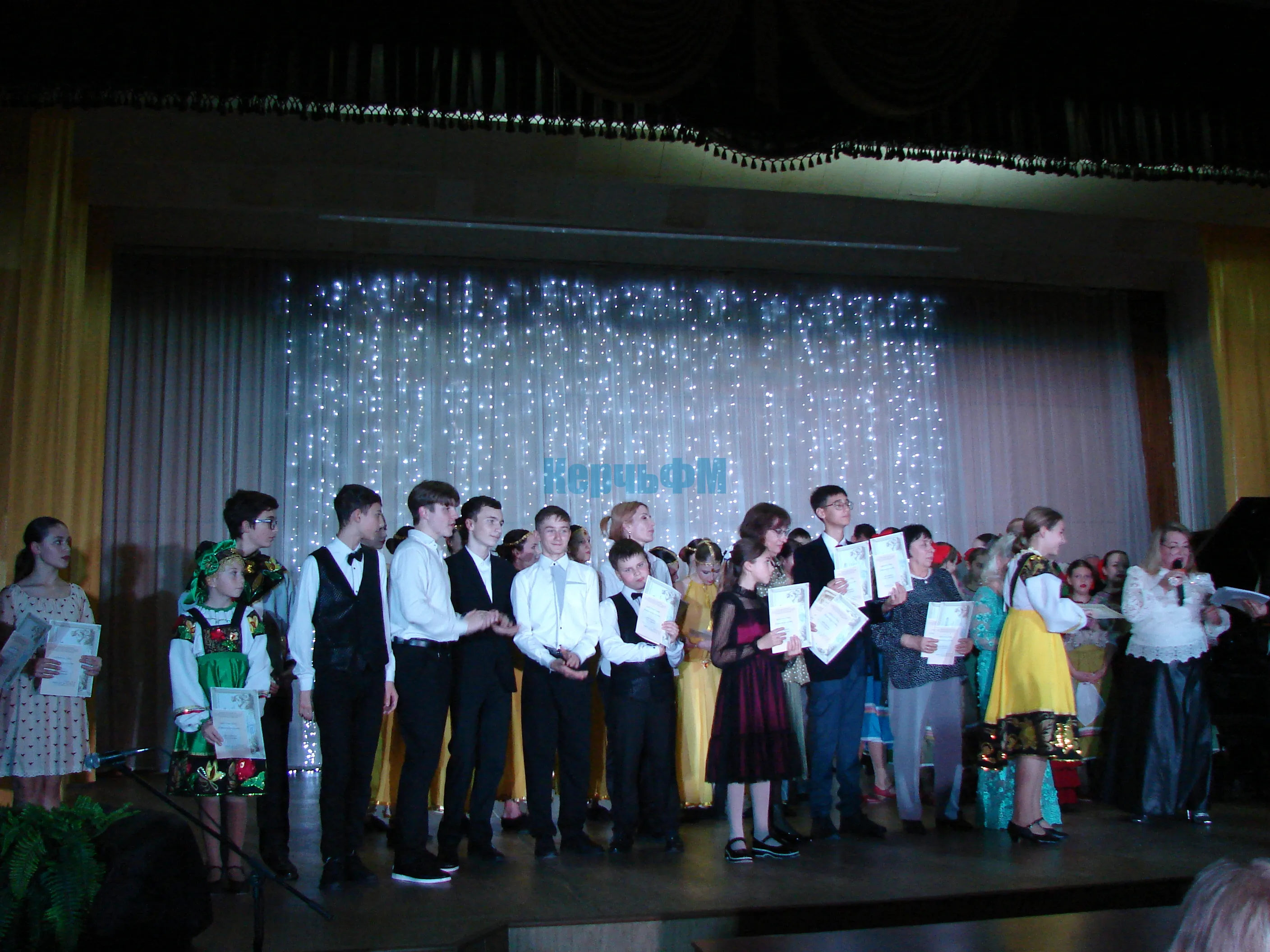 После концерта главный инициатор и художественный руководитель "Концертного ателье" Виктория Ковисова отметила самых активных участников проекта почетными грамотами и рассказала более подробно о своем проекте КерчьФМ.