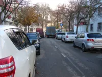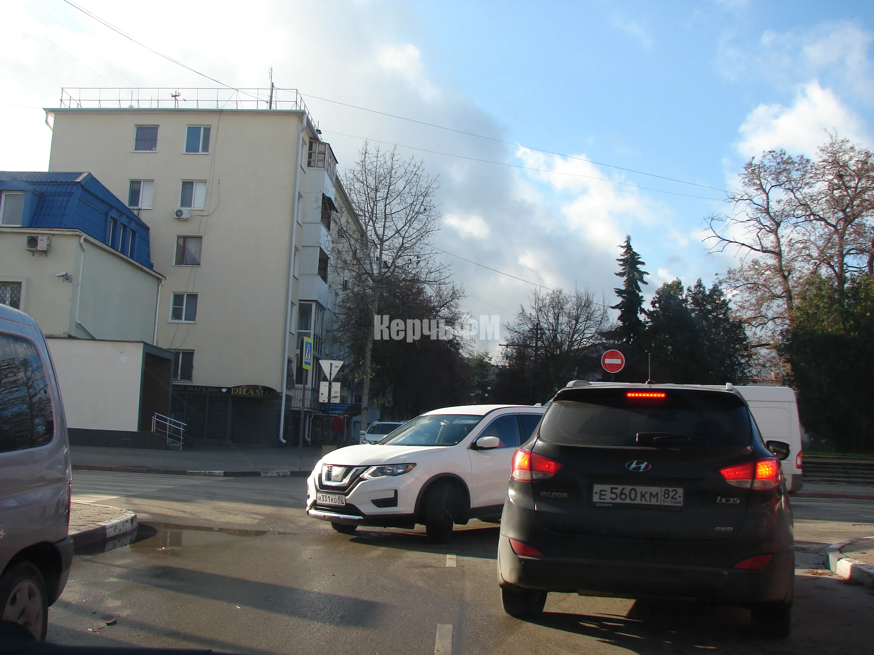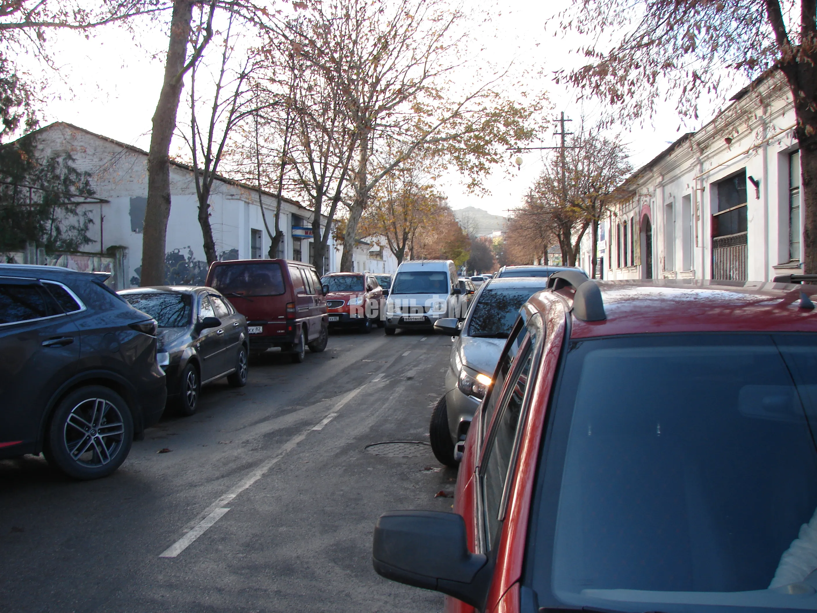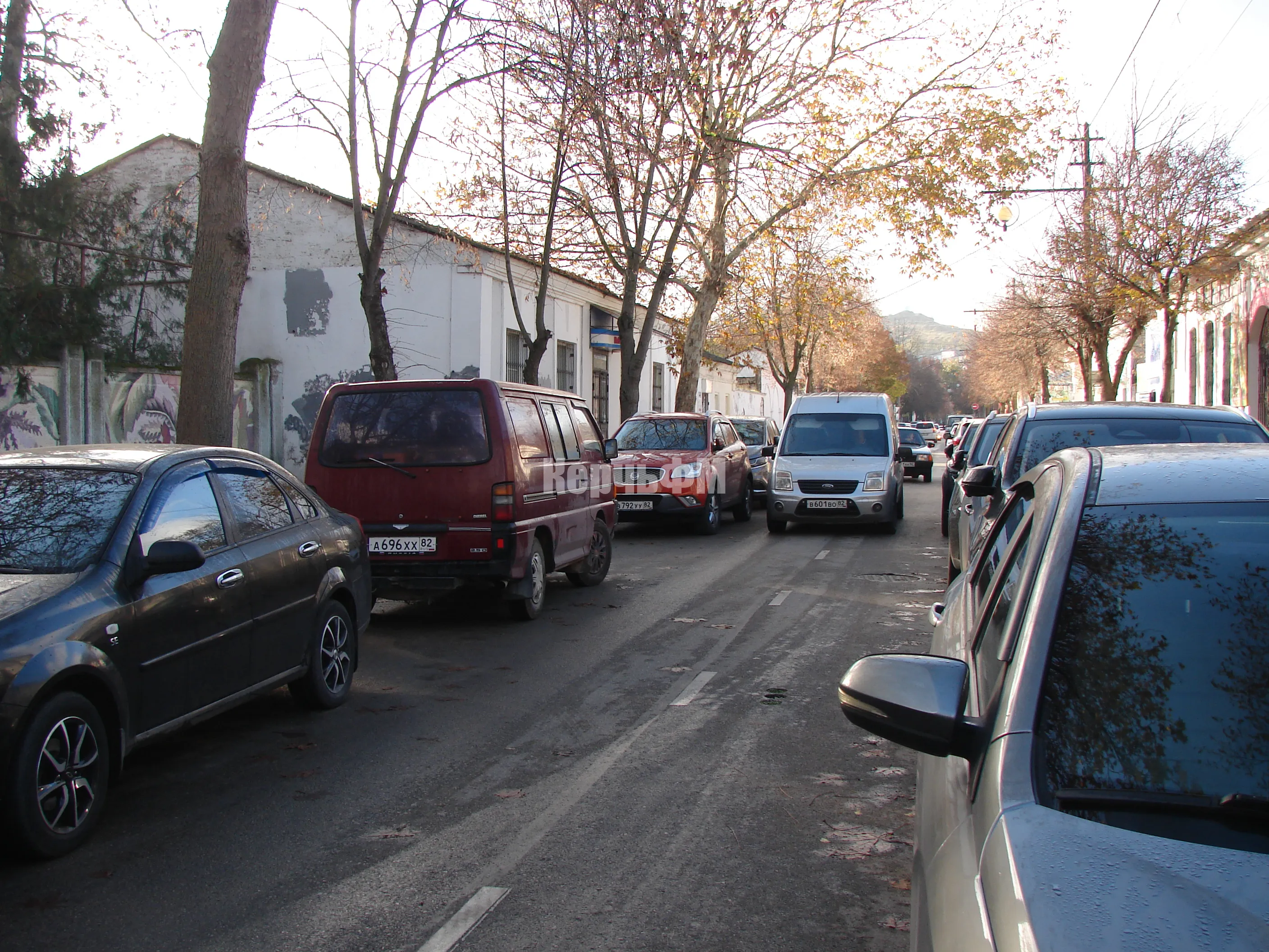 Машины припаркованы и слева, и справа узкой дороги, передает КерчьФМ.