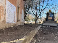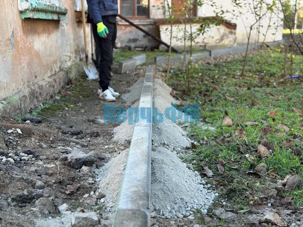 В ходе начатых работ по благоустройству двора вдоль тротуаров был положен бордюрный камень, ведется обустройство самих тротуаров.