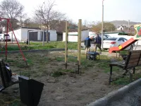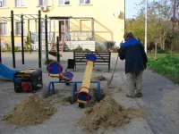 Ведется замена игрового оборудования с предварительной подготовкой травмобезопасного основания.