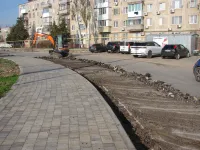 Выполнено мощение тротуаров и пассажирской платформы автовокзала - более 9500 кв.м.
