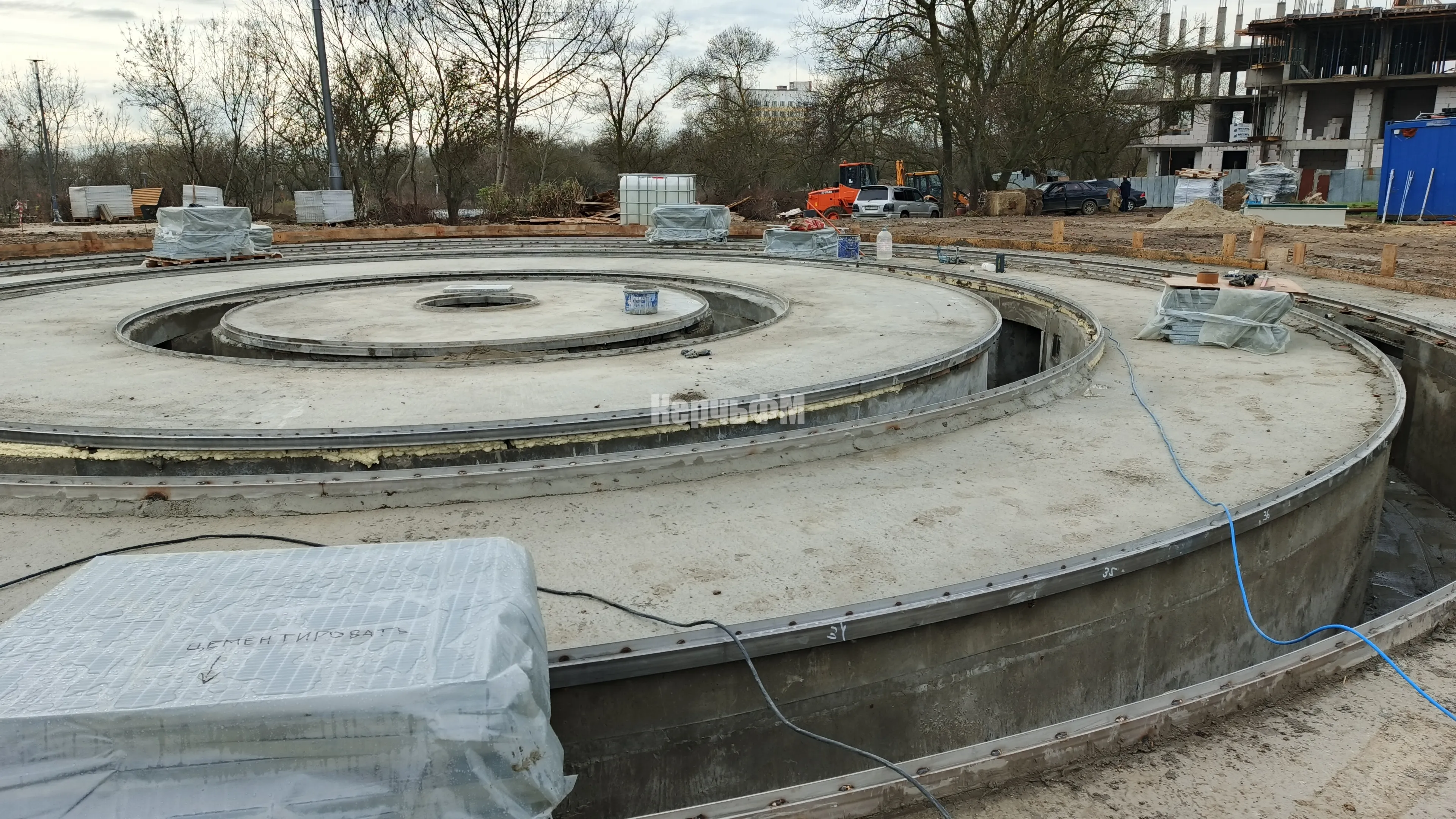 Следующим этапом станет облицовка конструкции и мощение пространства вокруг гидротехнического сооружения.
