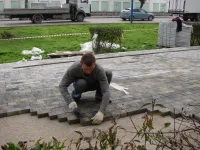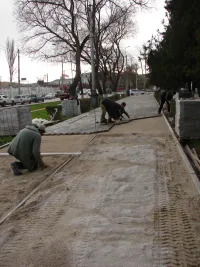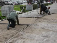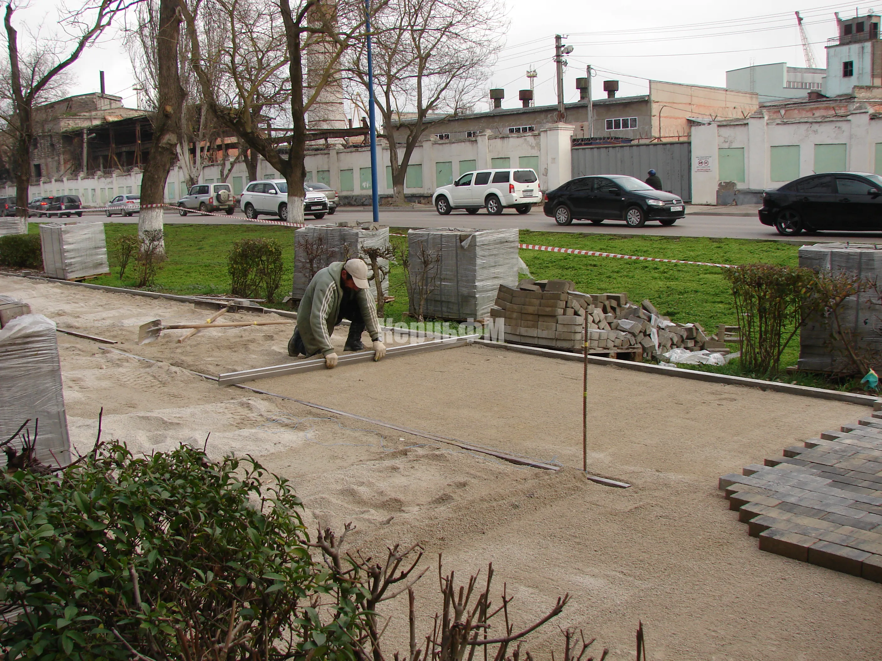 Бордюры здесь были установлены практически сразу после демонтажа старой плитки.