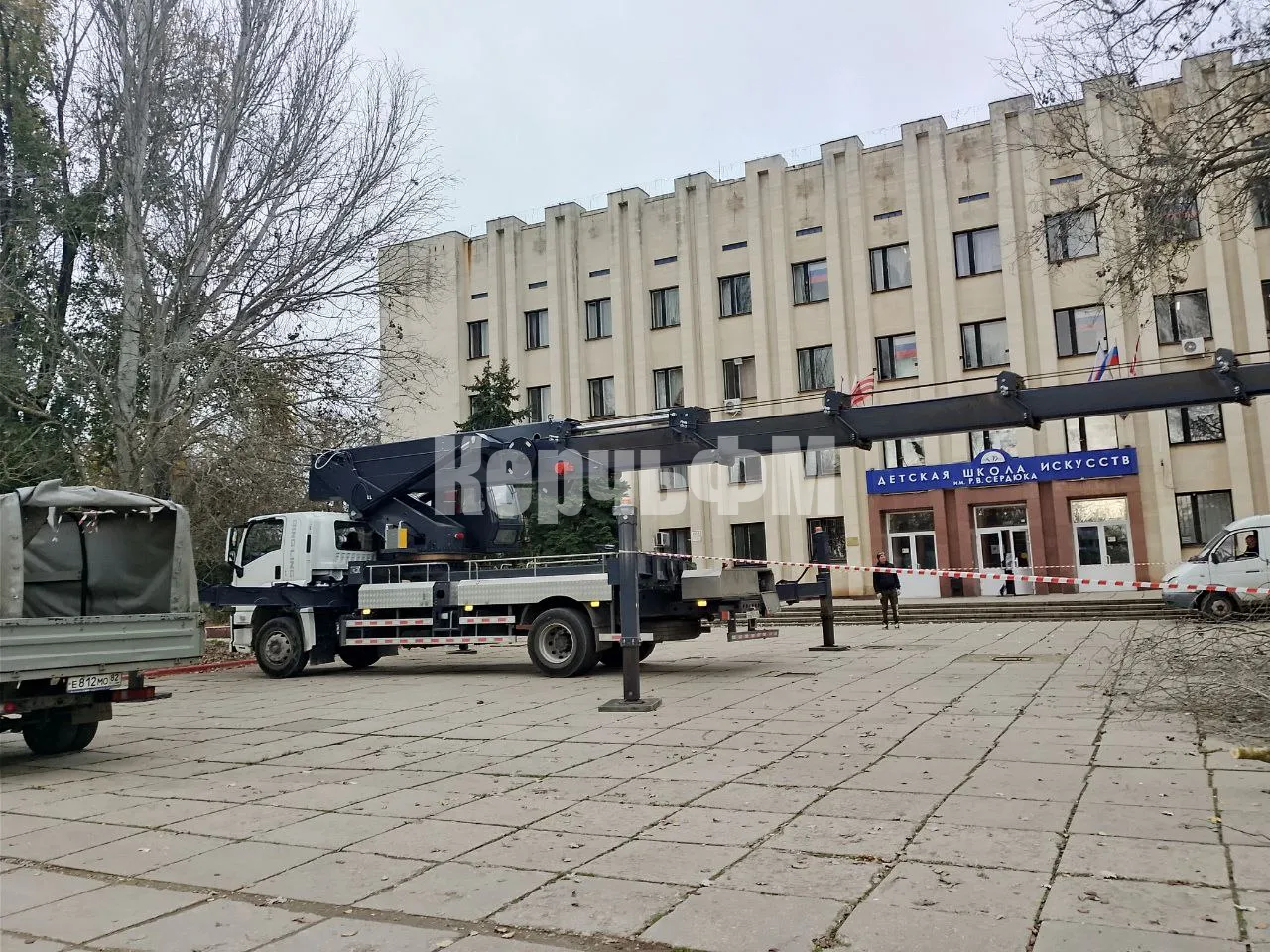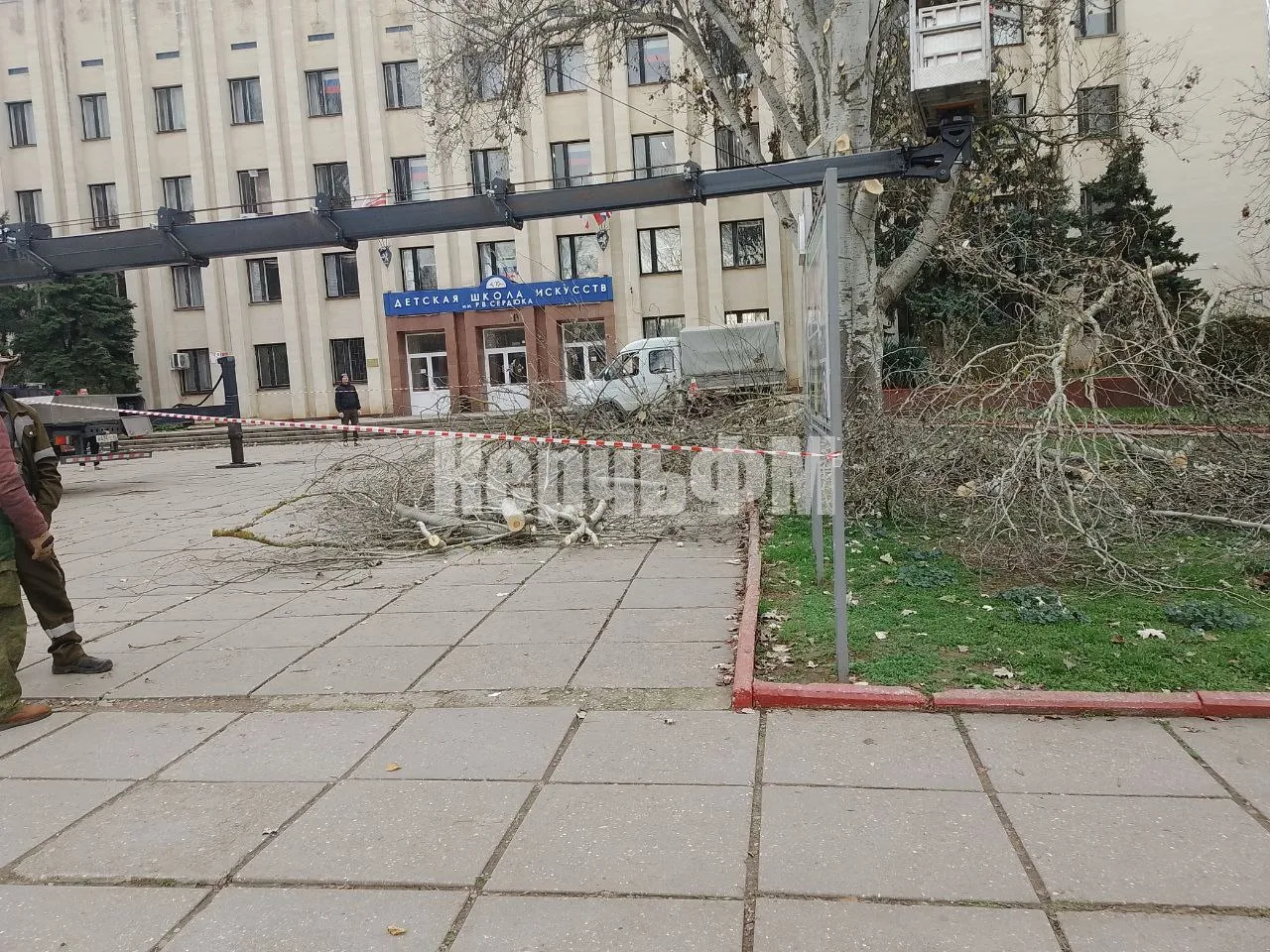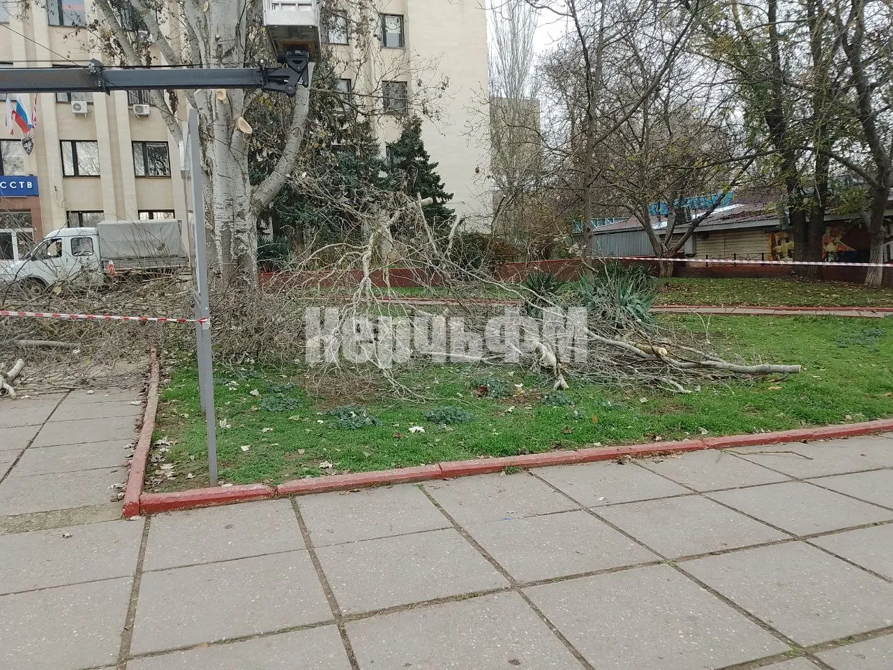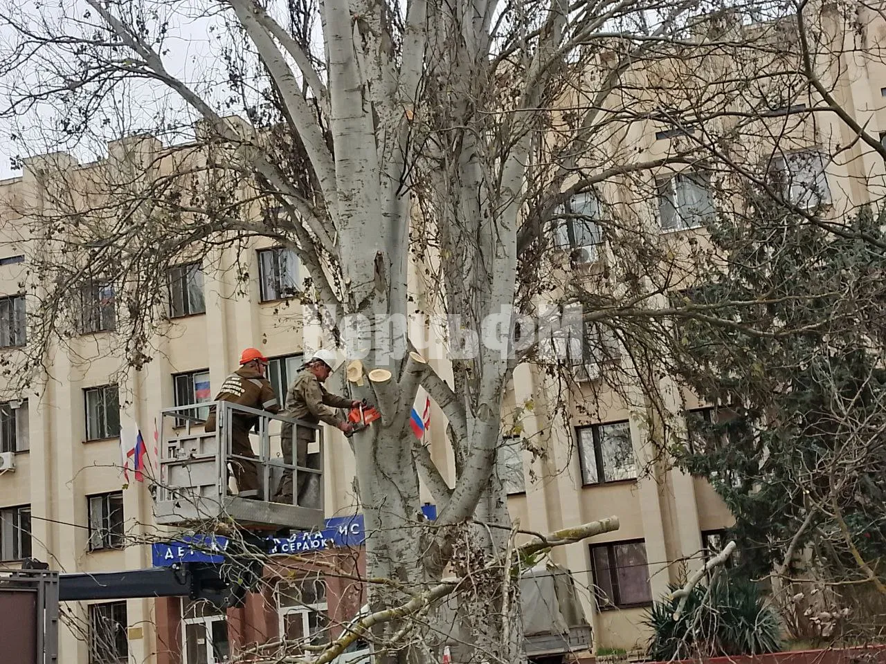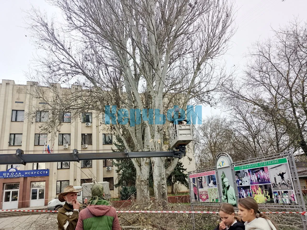 Кронирование ведется с применением вышки, передает КерчьФМ.