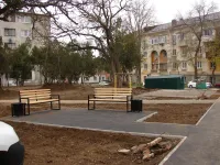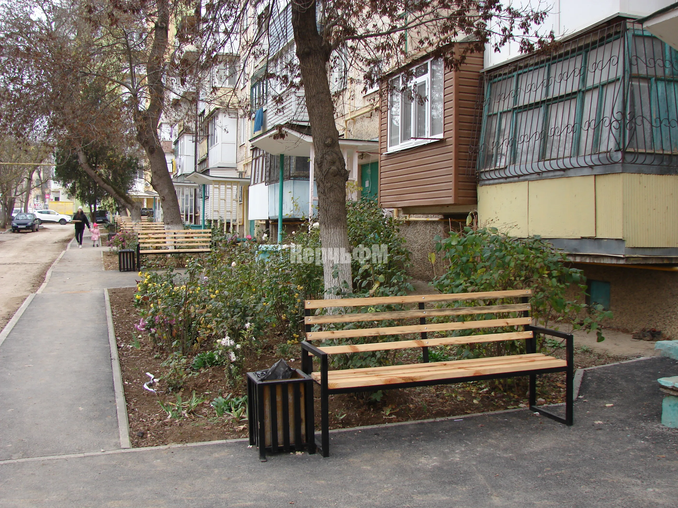 У дома по Войкова, 31 установили лавочки и опоры для сушки белья.