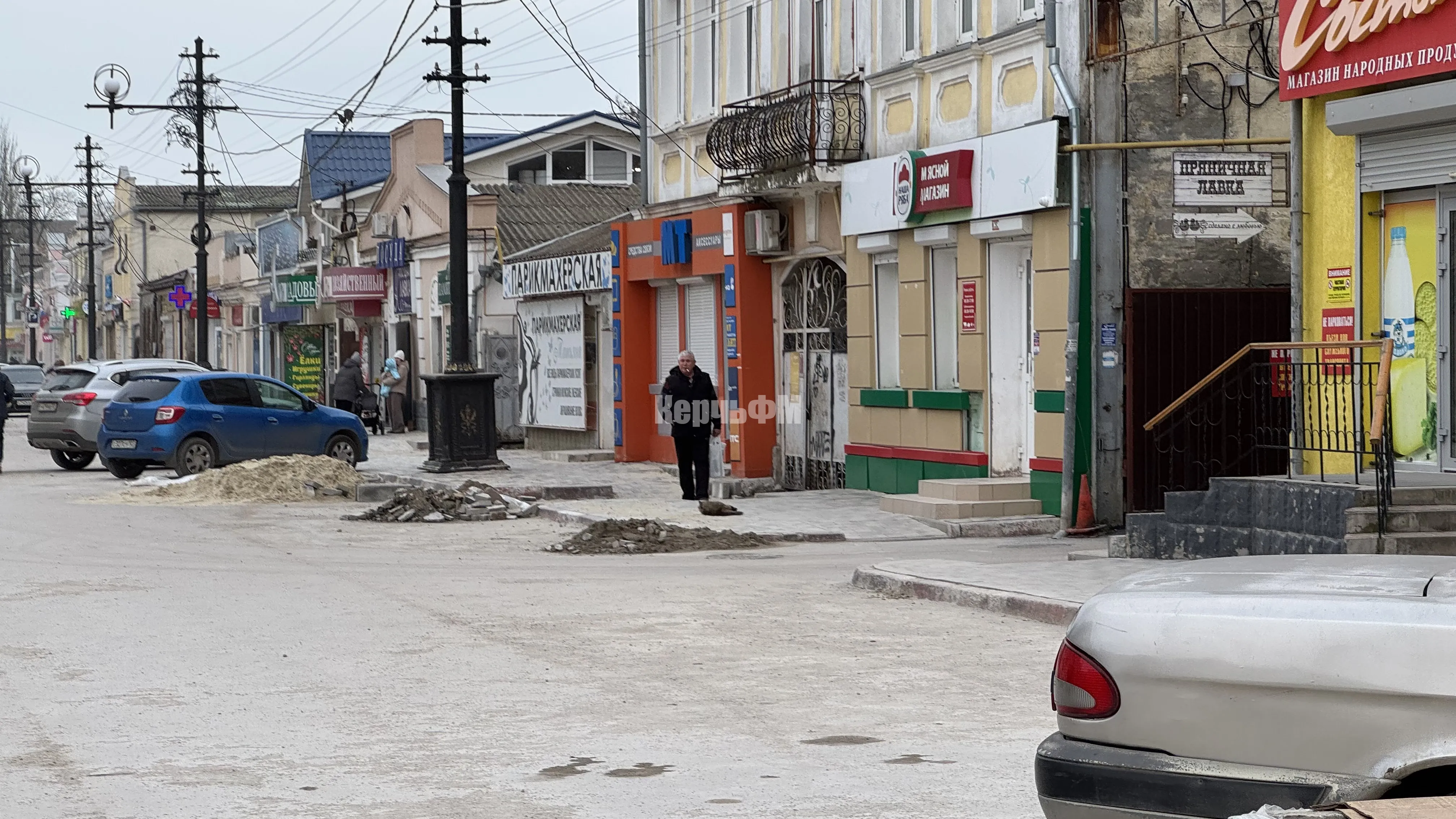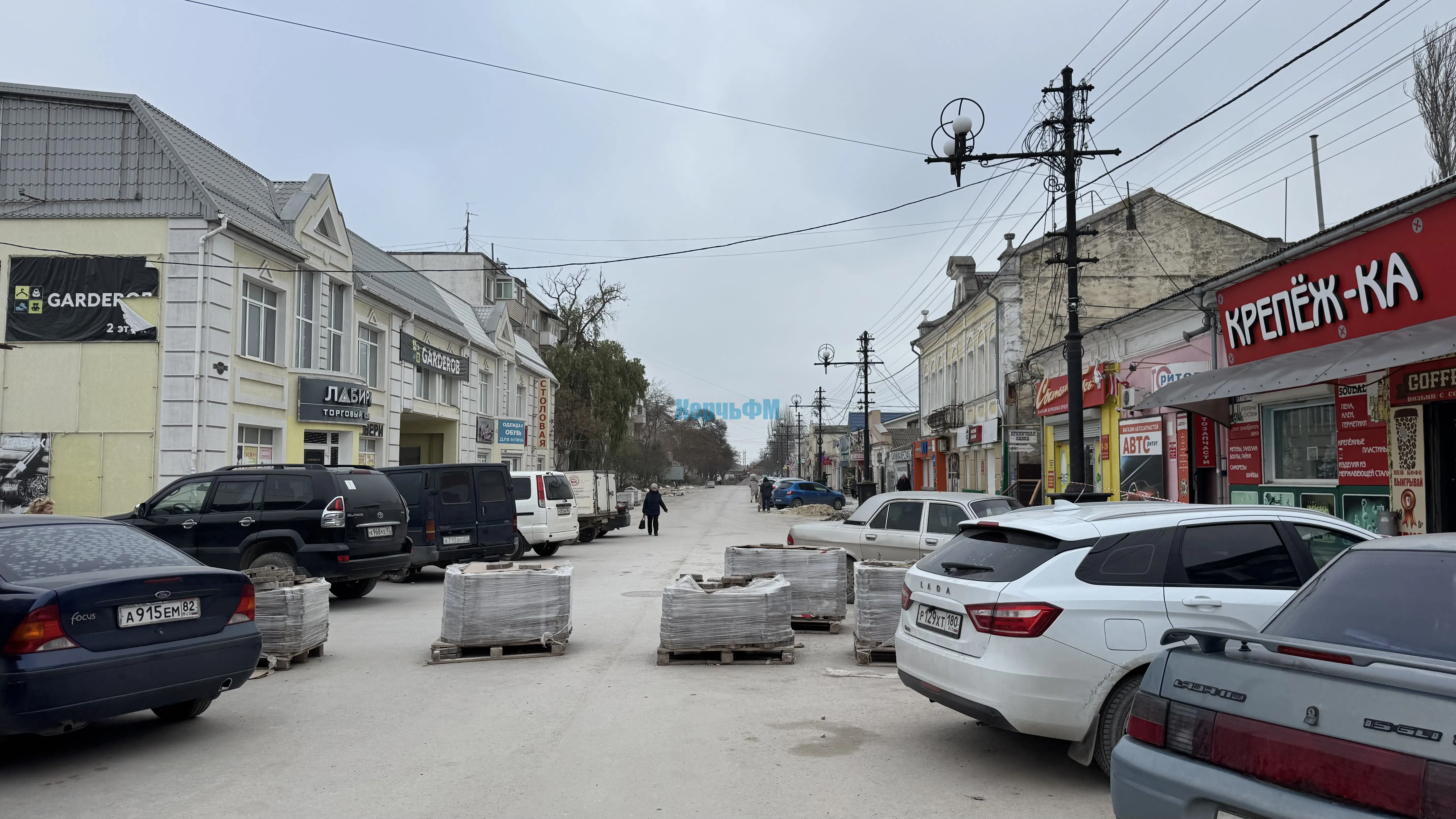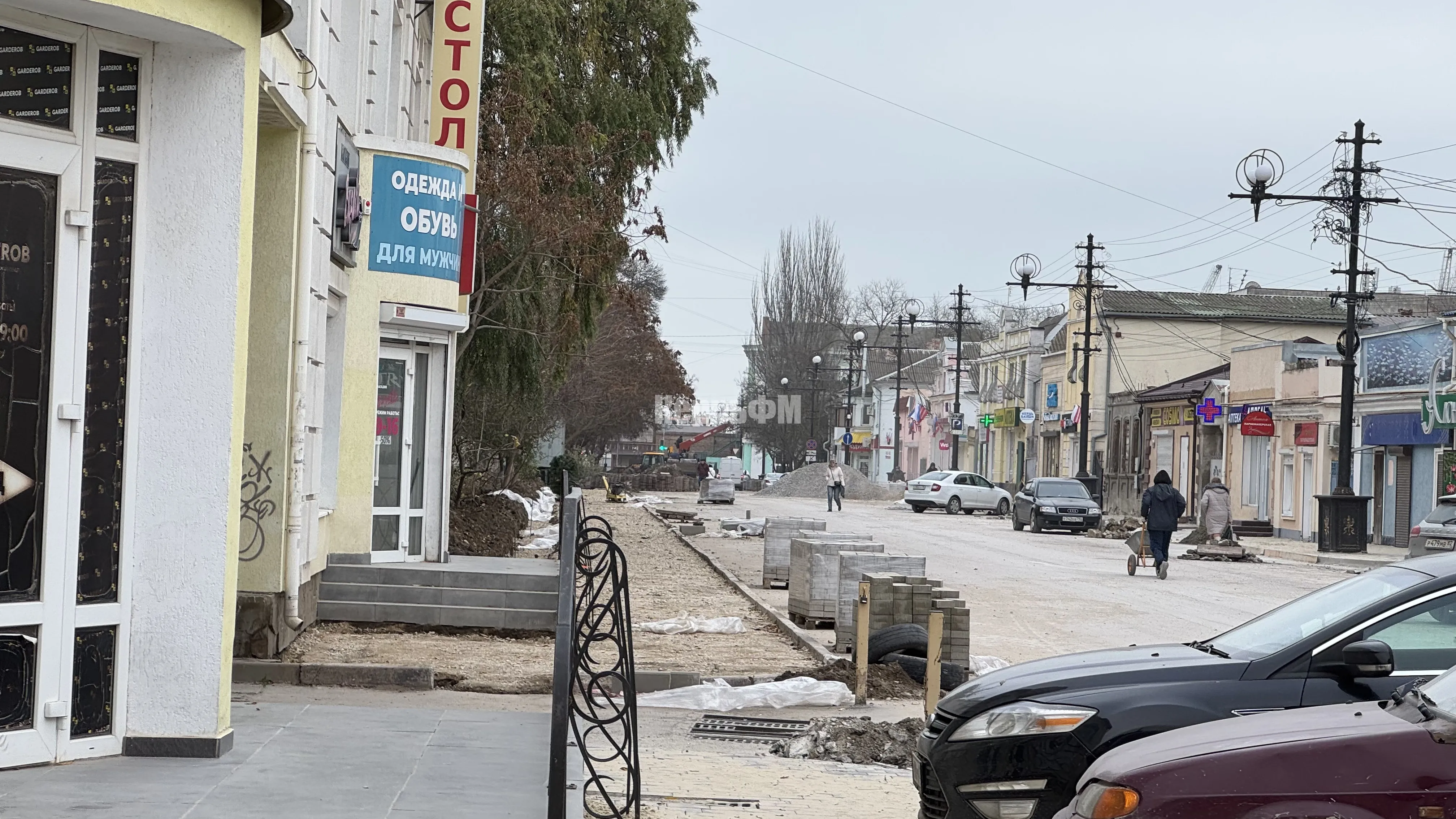 В Керчи 5 декабря на улице Пролетарской продолжаются работы. Специалисты заняты укладкой плитки на тротуарах, - передает КерчьФМ