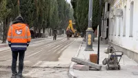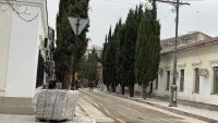 Движение транспорта по улице не осуществляется. Заезд с улицы Карла Маркса закрыт. Рабочие установили предупреждающие дорожные знаки.