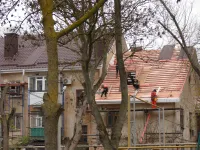 Очередной такой дом находится по Студенческой, 6. Там капитальный ремонт кровли с заменой ливневых стоков, стропил, кровельного материала выходит на финишную прямую.