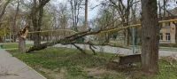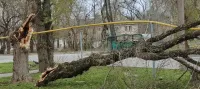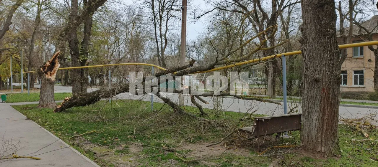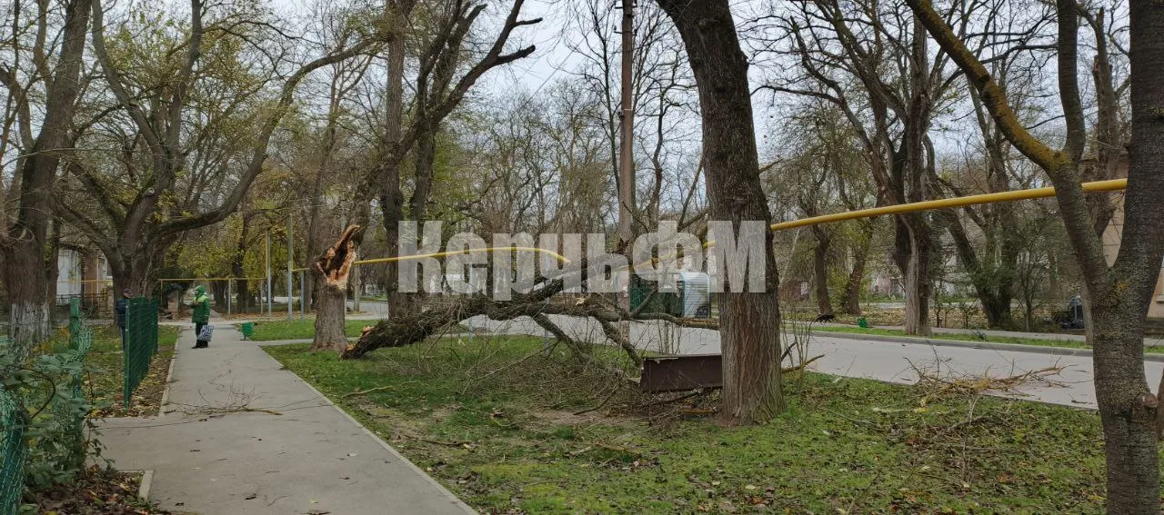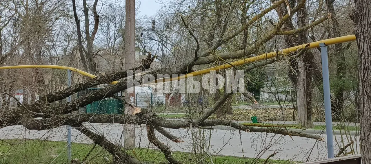 Сегодня, около 14 часов, во время сильного ветра дерево упало и погнуло газовую трубу.
