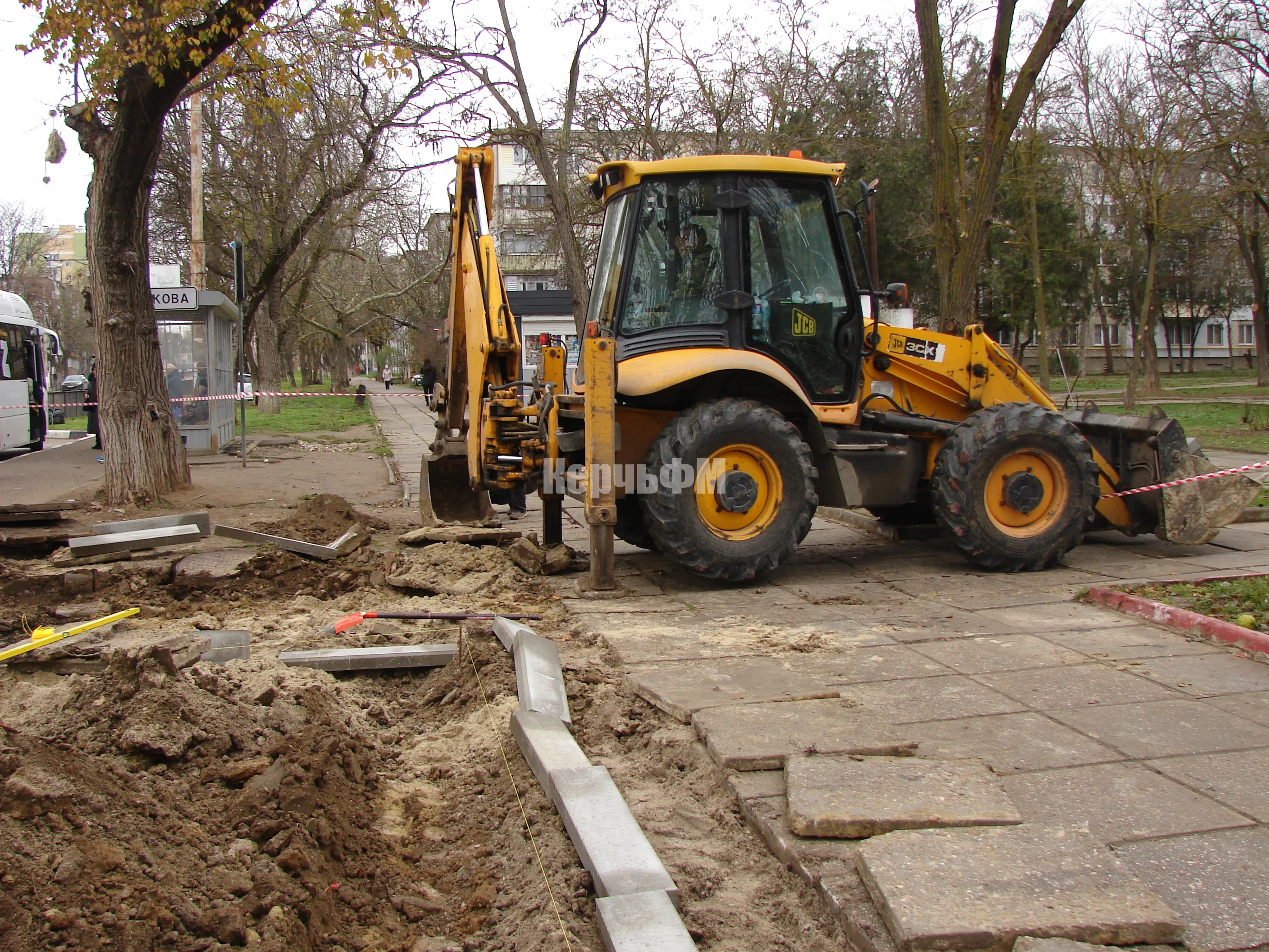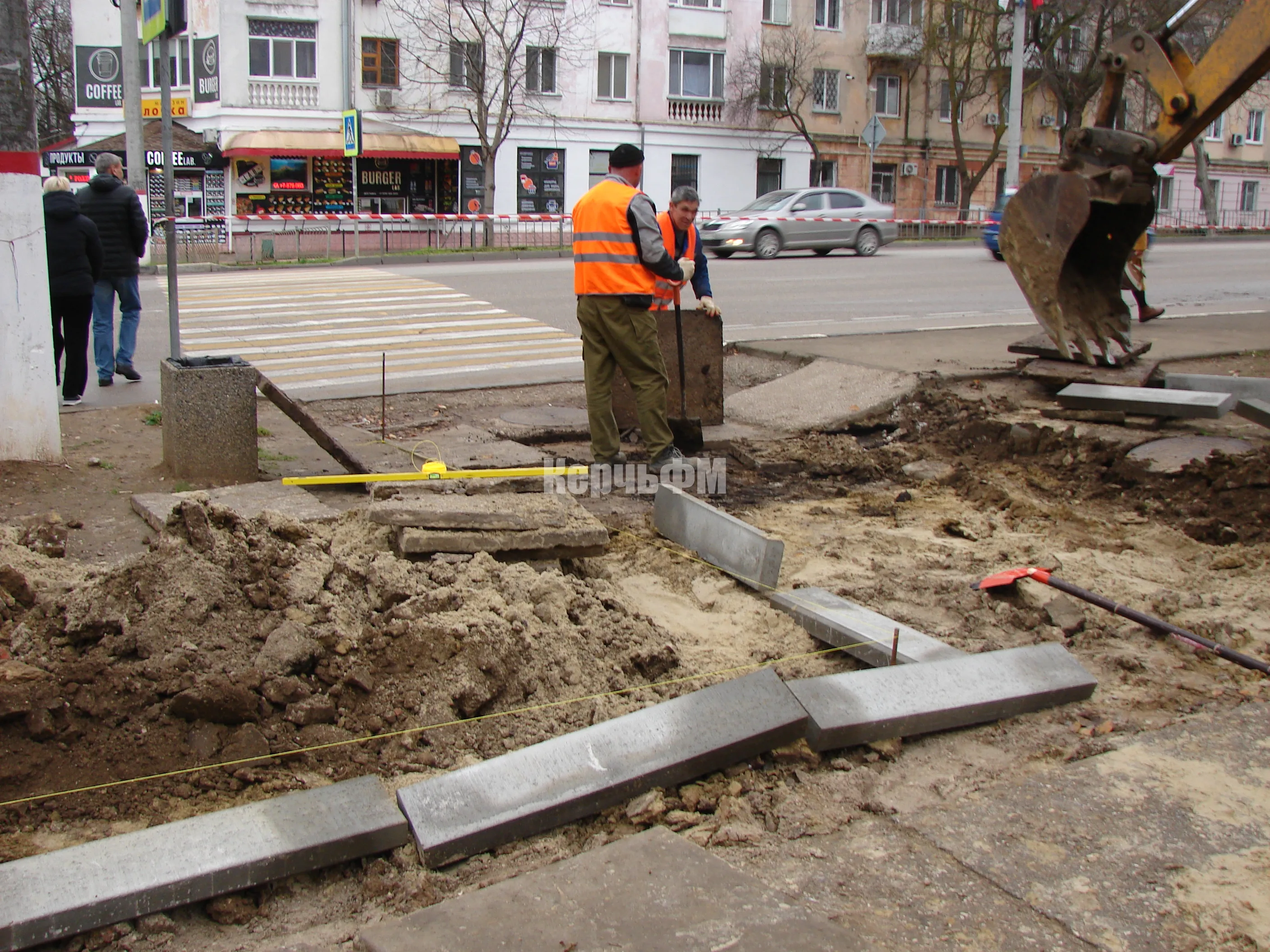 У остановки "Казакова" в Керчи восстанавливают тротуар у пешеходного перехода