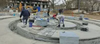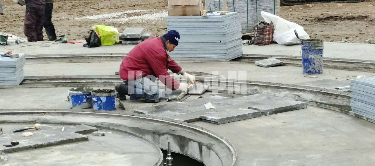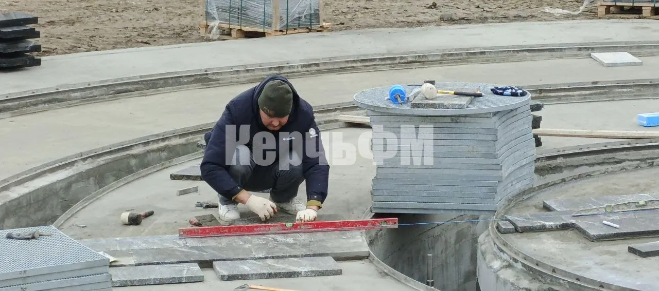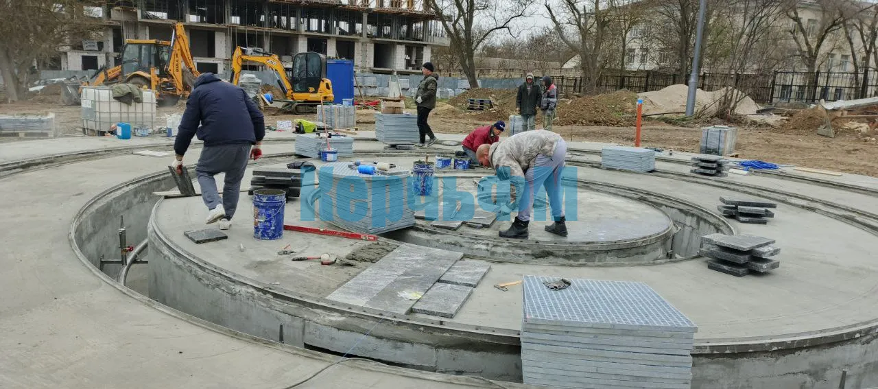 Строители фонтана в Приморском парке приступили к облицовочным работам, передает КерчьФМ.