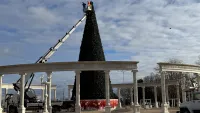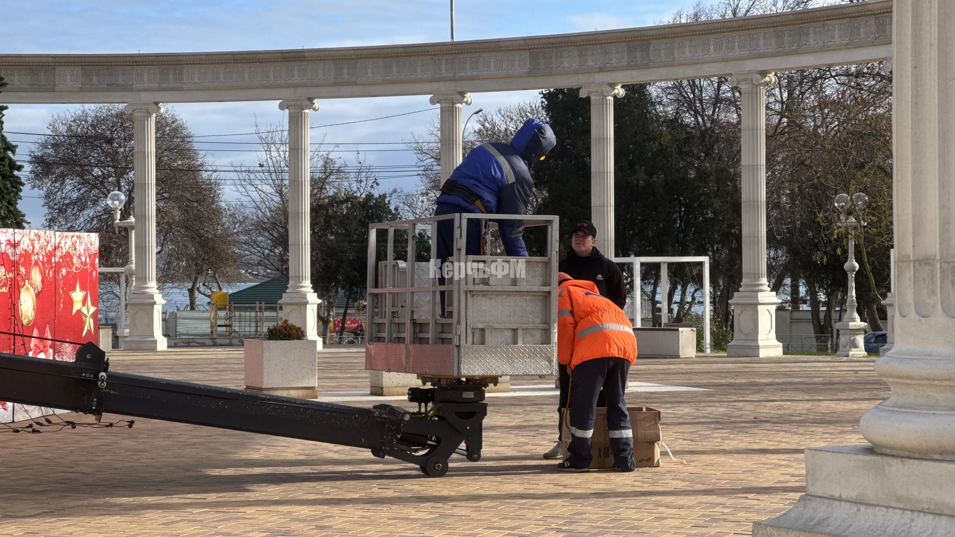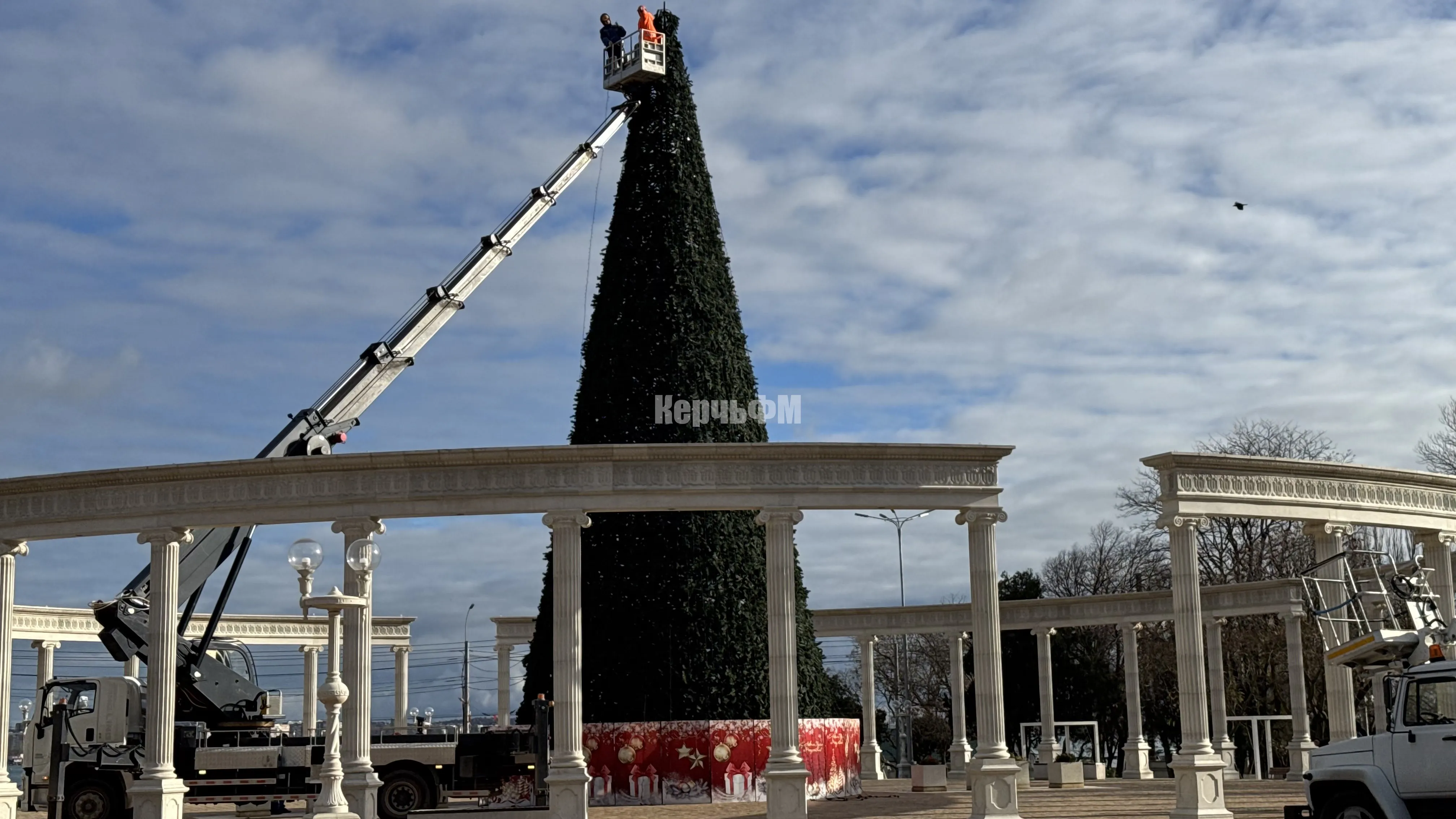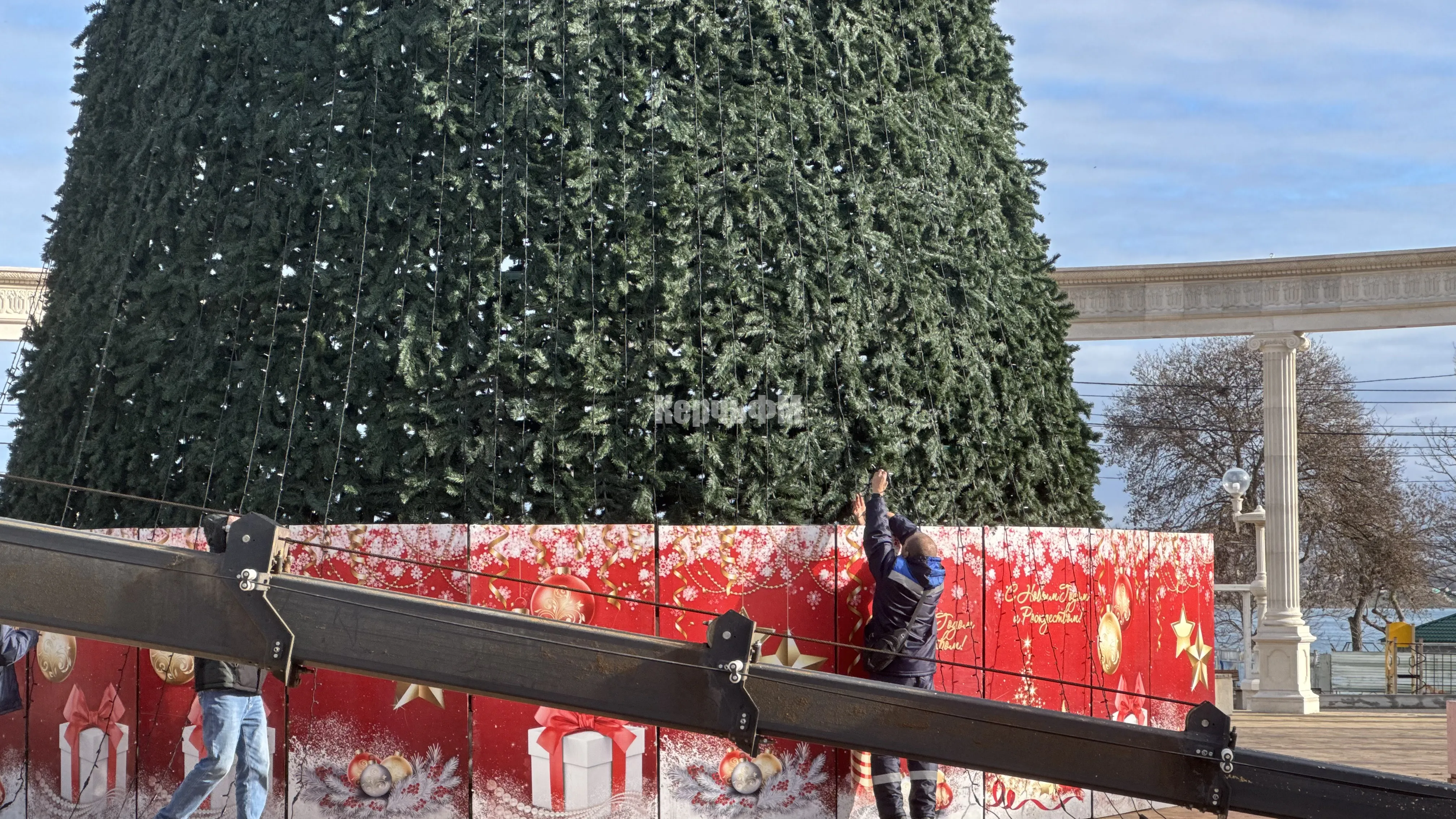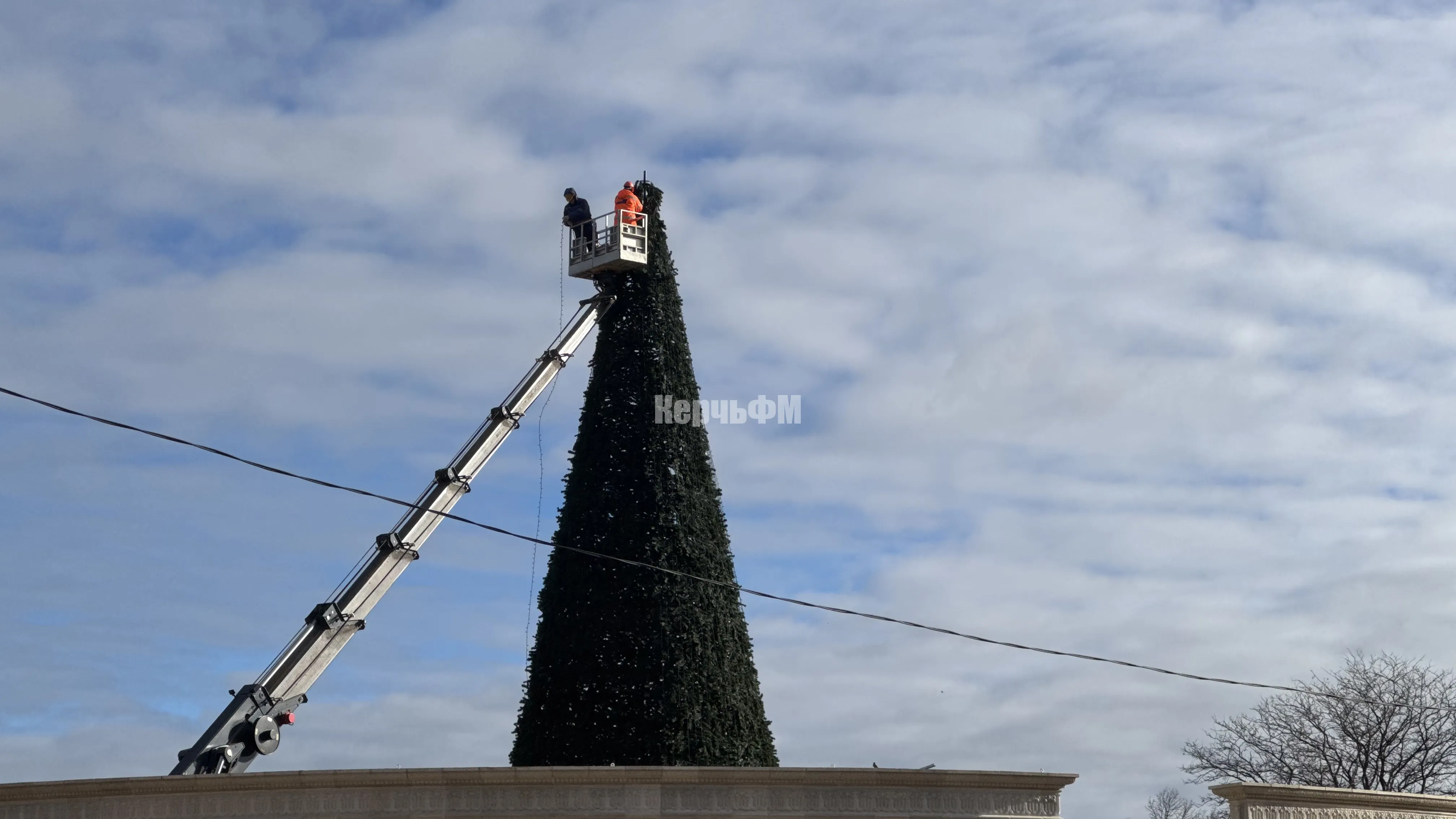 Керчь засияет по-новому: на главной ёлке монтируют новые гирлянды