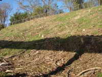Заросли над пляжем ликвидировали с правой стороны от спуска.