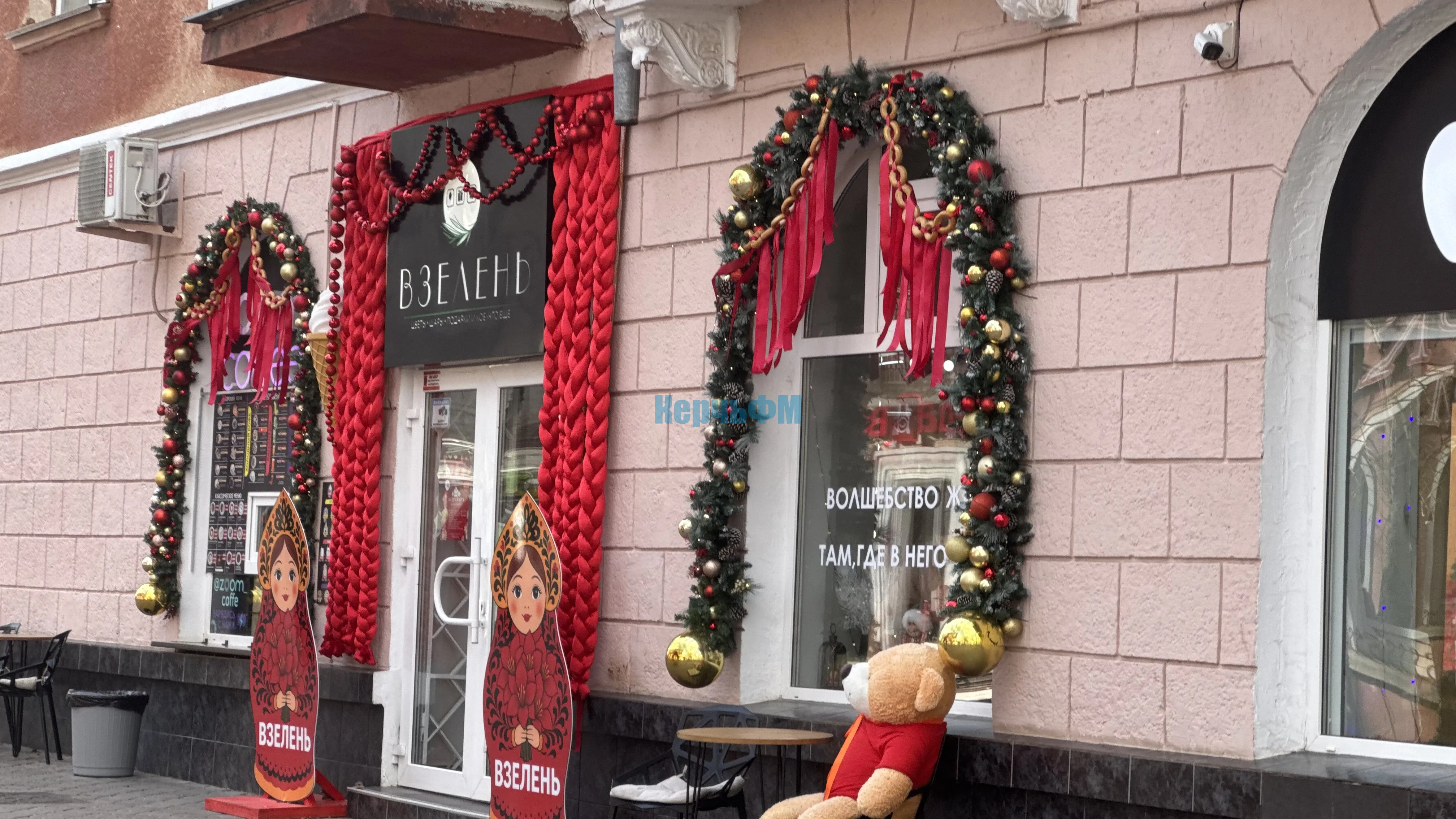 Внутренние помещения также преображаются: владельцы украшают залы гирляндами, ёлочными композициями и новогодними украшениями, создавая атмосферу праздника для гостей.