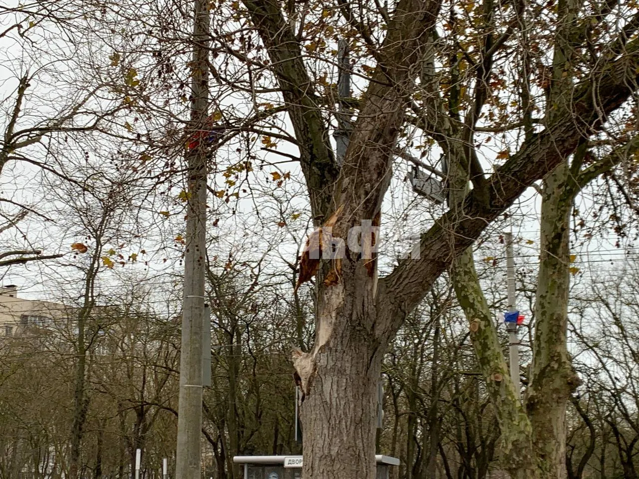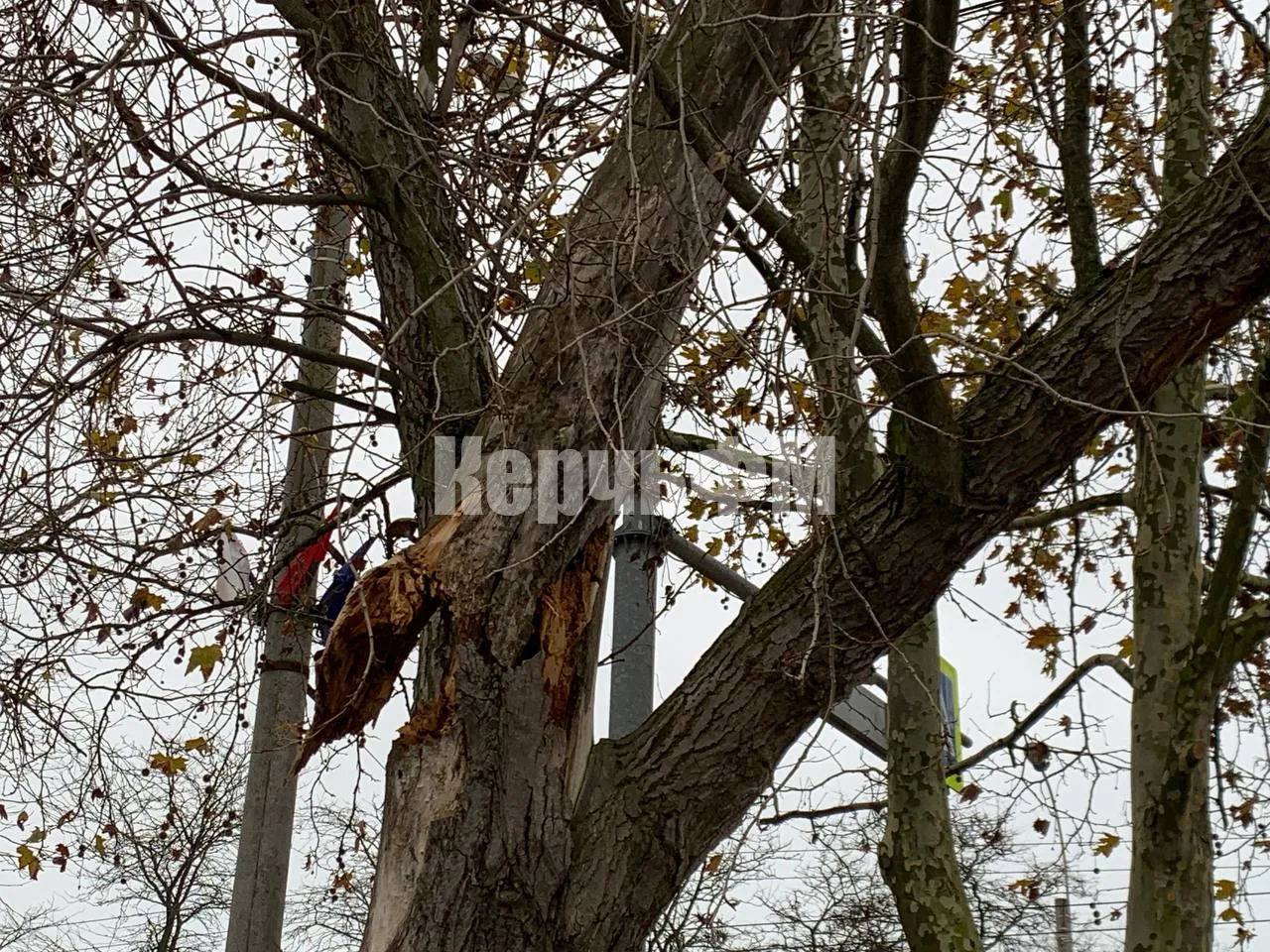 В минувшую субботу КерчьФМ сообщал в своей новостной ленте о надломленном от ветра стволе дерева над парковкой МФЦ.