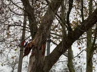 Надломленный сук дерева у МФЦ в Керчи не могут убрать третий день