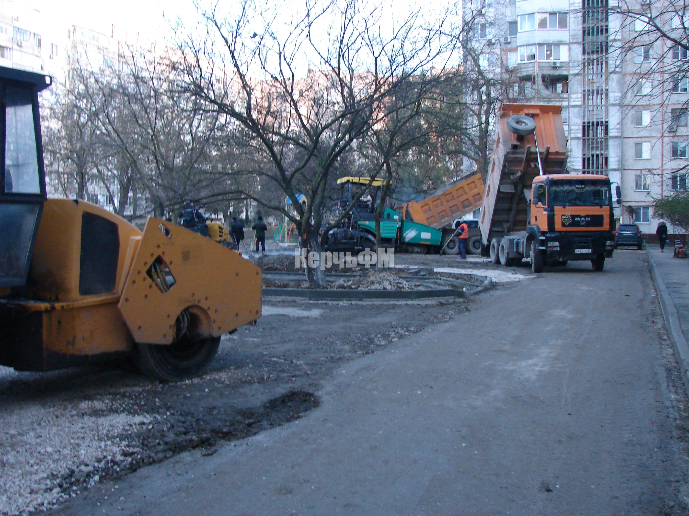 На придомовой территории района МКД по Генерала Петрова, 16 в Керчи асфальтируют парковки
