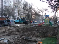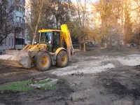 В большом дворе четырех высотных домов по Генерала Петрова, 16, 18, 20 и Сморжевского, 3 продолжается благоустройство территории.