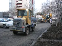 Новые обустроенные парковки продолжают асфальтировать.