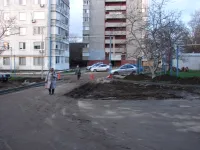 За домом №16 расчищенную площадку готовят к асфальтировке.