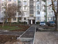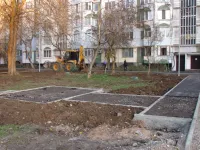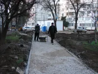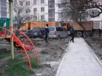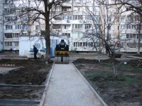 Продолжается укладка асфальта на бельевых площадках и подготовка новых тротуарных дорожек.