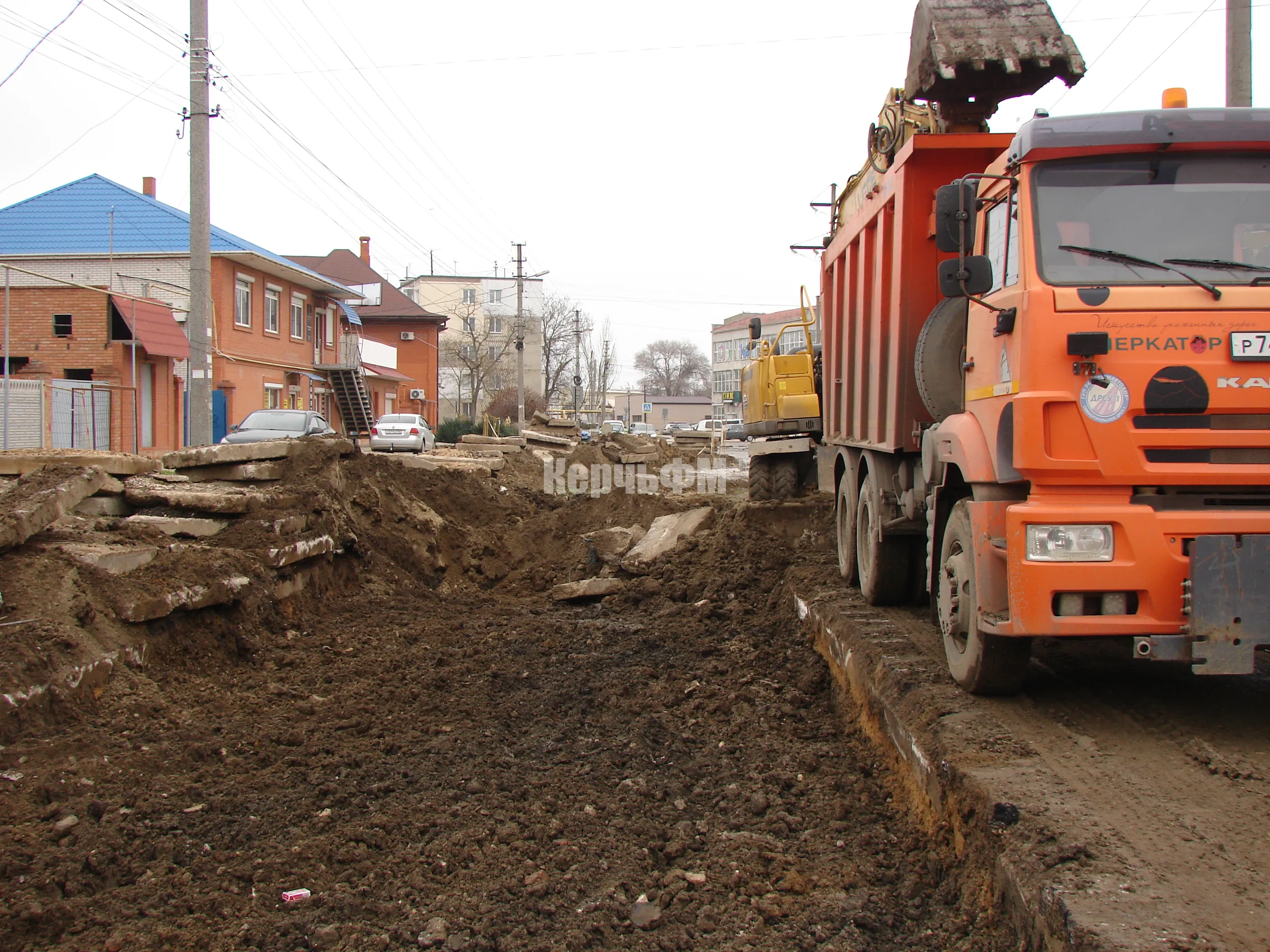 Как рассказал КерчьФМ представитель подрядчика, все снятые плиты верхнего покрытия дороги будут возвращены на место. Сверху потом будет уложен асфальт.