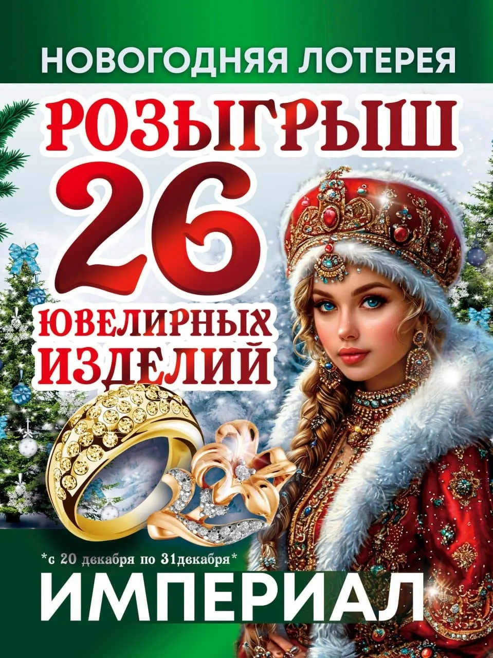 С 20 по 31 декабря в магазине пройдет новогодняя лотерея, приуроченная к наступающему 2026 году. В рамках акции будет разыграно 26 ювелирных украшений. Участие в лотерее дает покупателям возможность не только приобрести новогодние подарки, но и получить дополнительный шанс выиграть драгоценный приз.