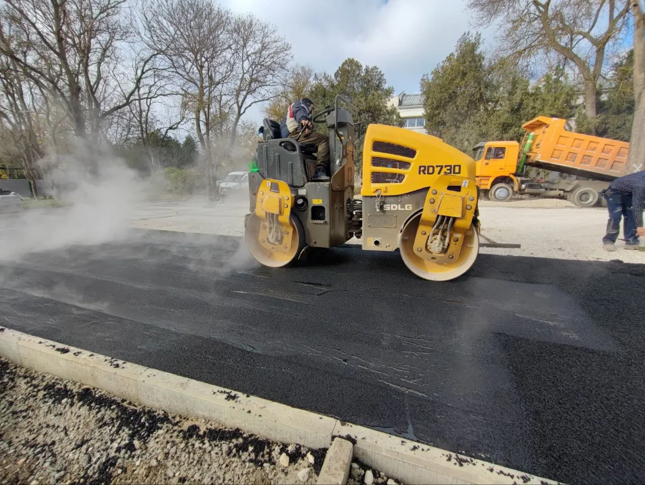 В Молодежном парке асфальтируют площадку для бадминтонного корта