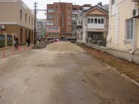 В Милицейском переулке демонтировали тротуарную плитку с обеих сторон дороги.