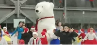 Котики - потомки кота Базилио, отряд бабок Ежек, желтые цыплятки, правнуки деда Мороза, сам дедушка Мороз, огромный белый медведь стали участниками ледовой новогодней сказки.