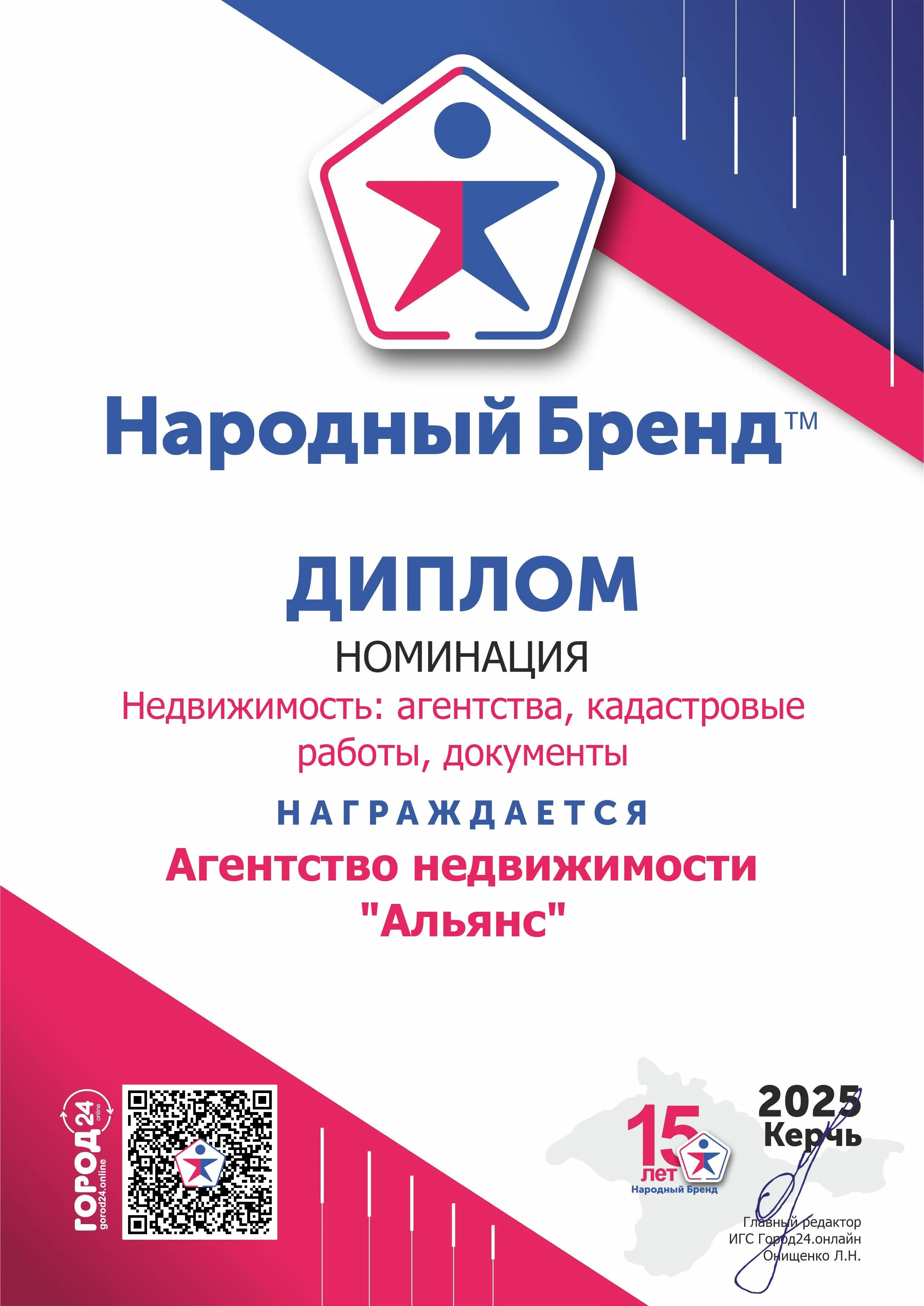 В поисках надежного проводника в области законодательства мы стремимся найти настоящего профессионала. Так методом народного голосования победителем престижного конкурса “Народный Бренд-2025” становится Керченское  агентство недвижимости "Альянс".