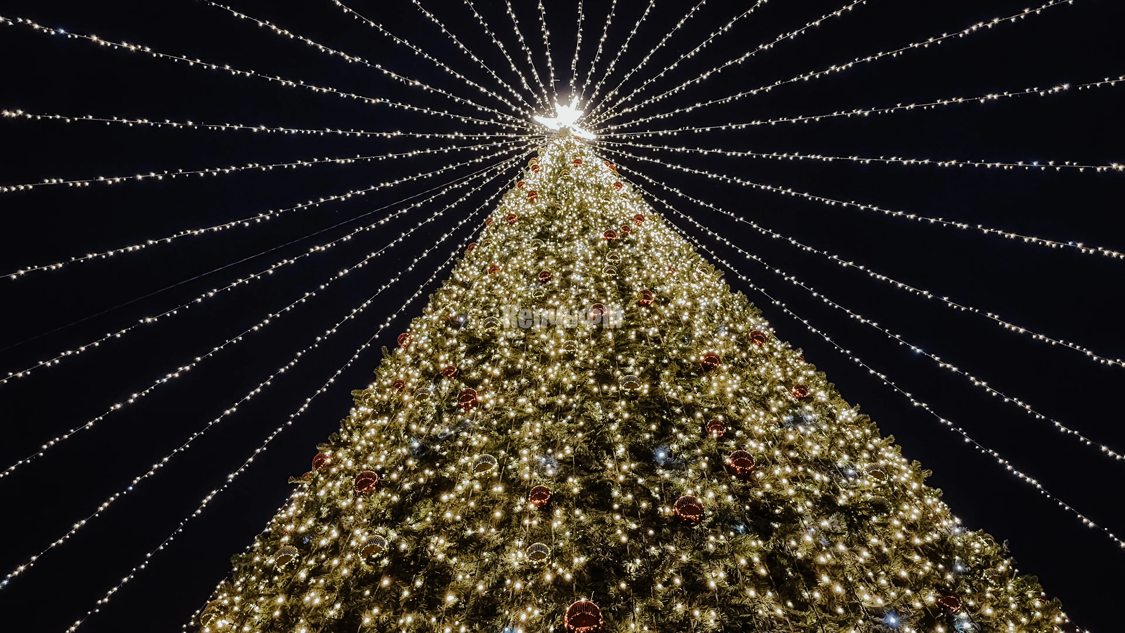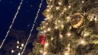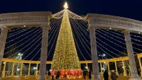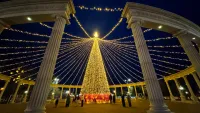 Главная зелёная красавица засияла тёплыми жёлтыми огоньками. В этом году ёлка выглядит особенно эффектно, всё выдержано в одной цветовой гамме, что делает её по-настоящему стильной и гармоничной. От неё невозможно оторвать глаз: так и хочется стоять и просто любоваться этой красотой.