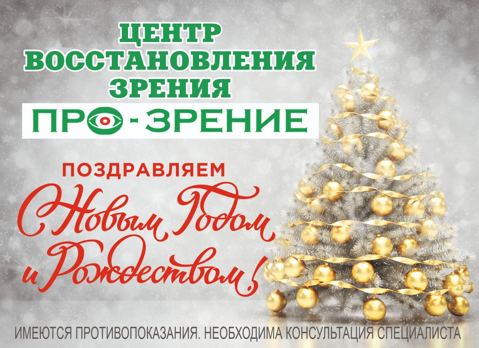 Центр восстановления зрения ПРО-ЗРЕНИЕ сердечно поздравляет вас с Новым годом и Рождеством! Пусть 2026 год откроет для вас новые возможности, принесет успех во всех начинаниях и подарит множество счастливых моментов.