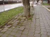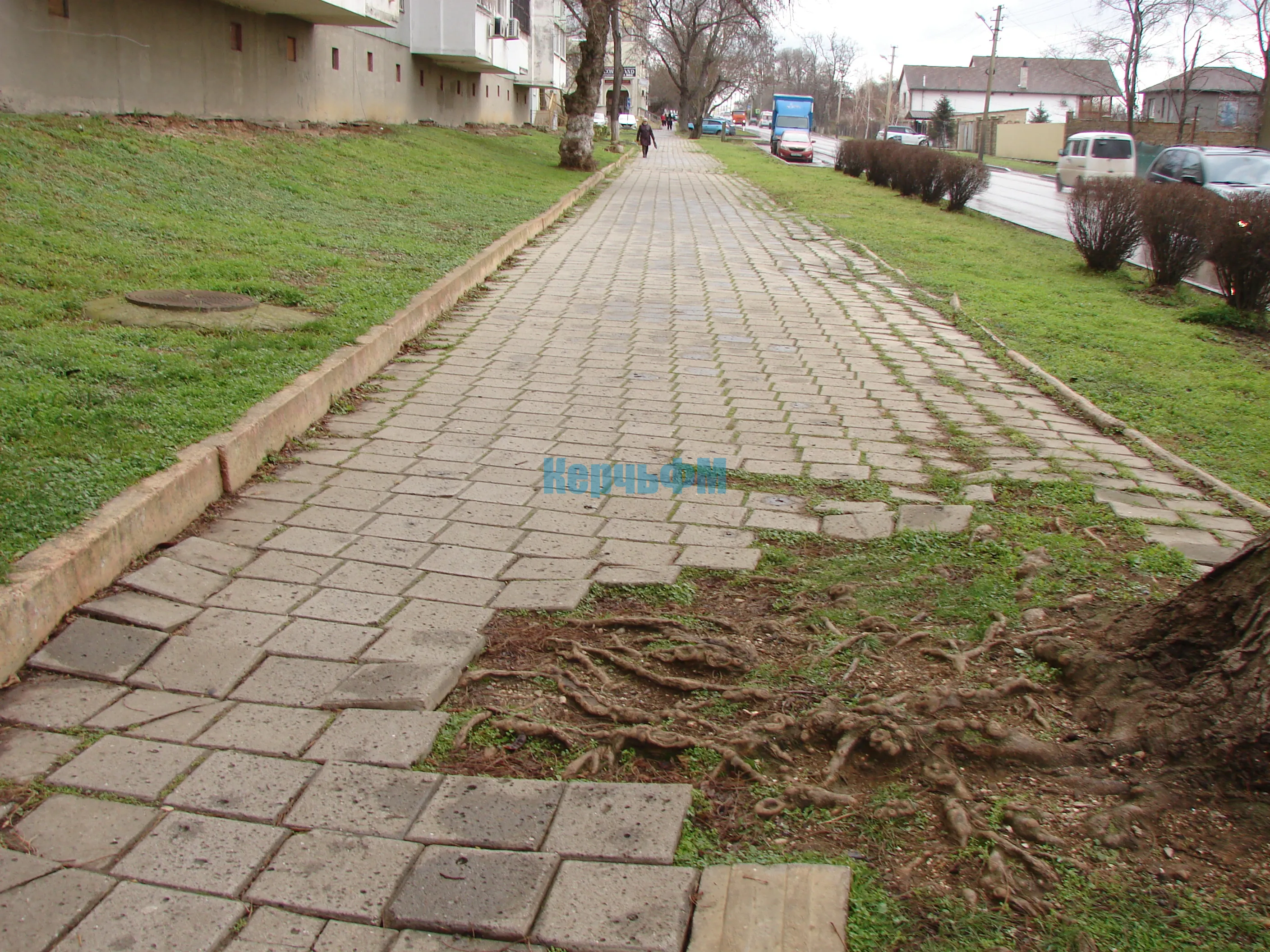Часть деревьев, растущих рядом с тротуаром и непосредственно на нем, удалили.