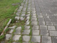 Ямы после корчевки засыпали землей и сверху положили плитку.