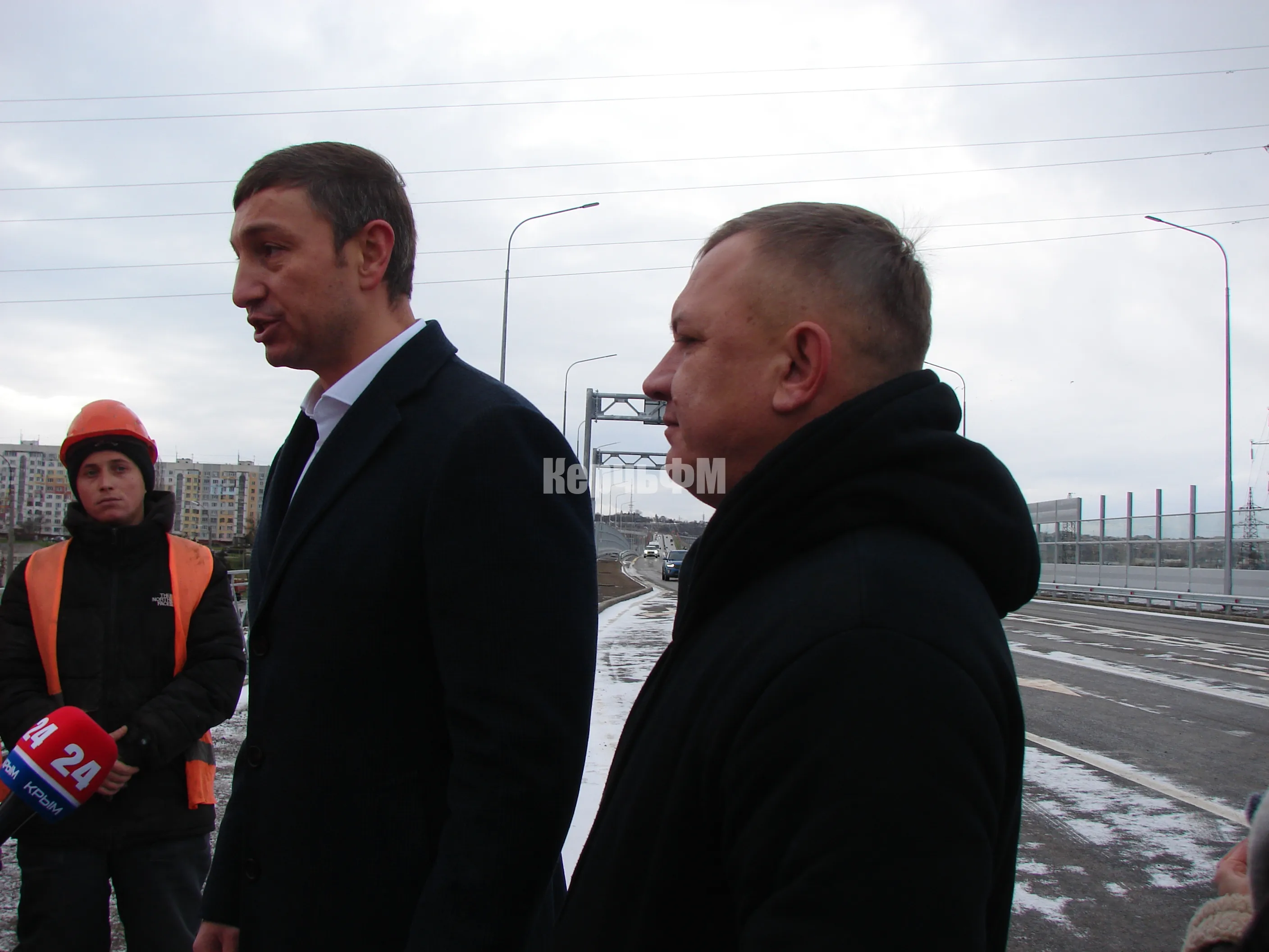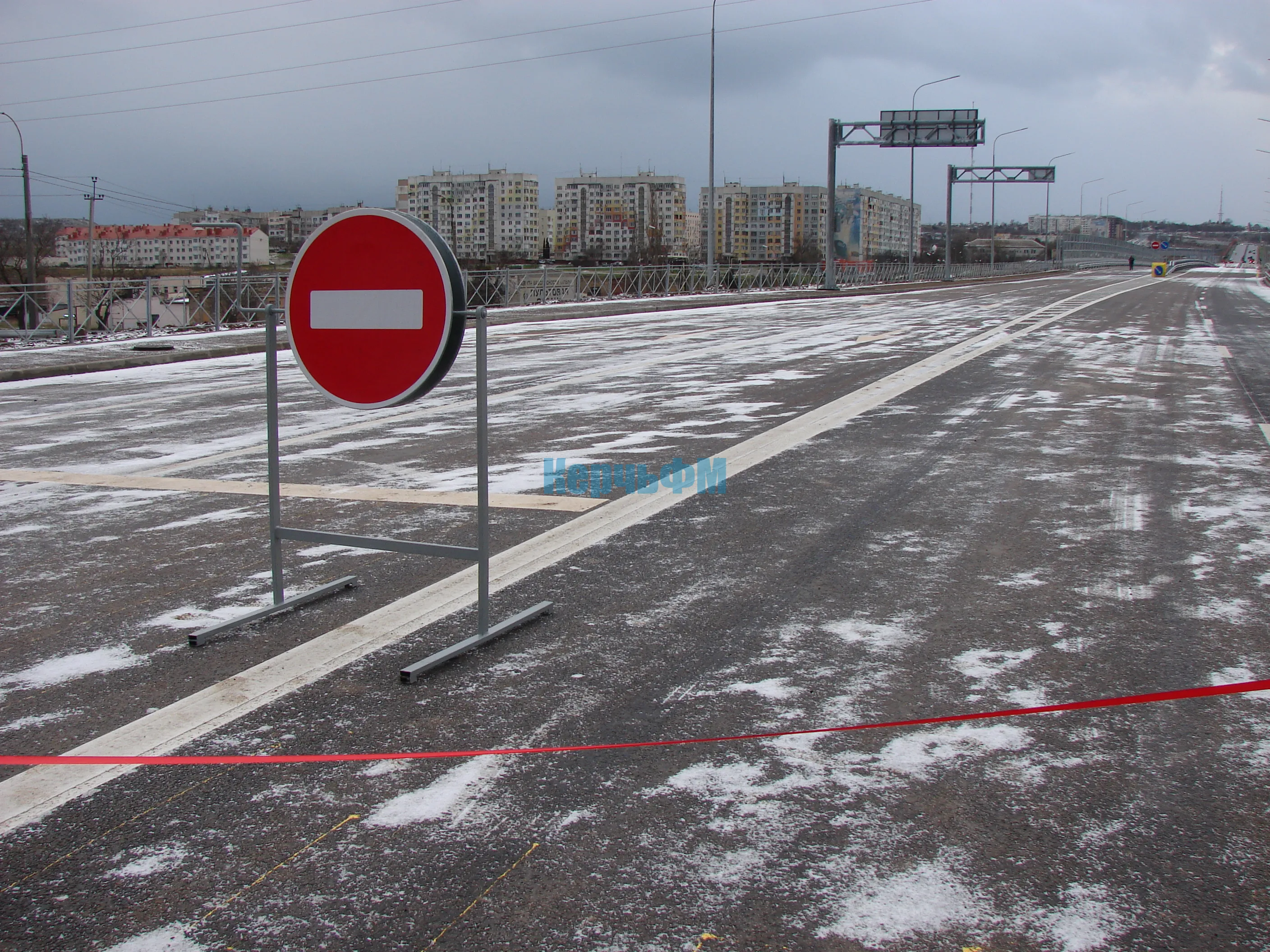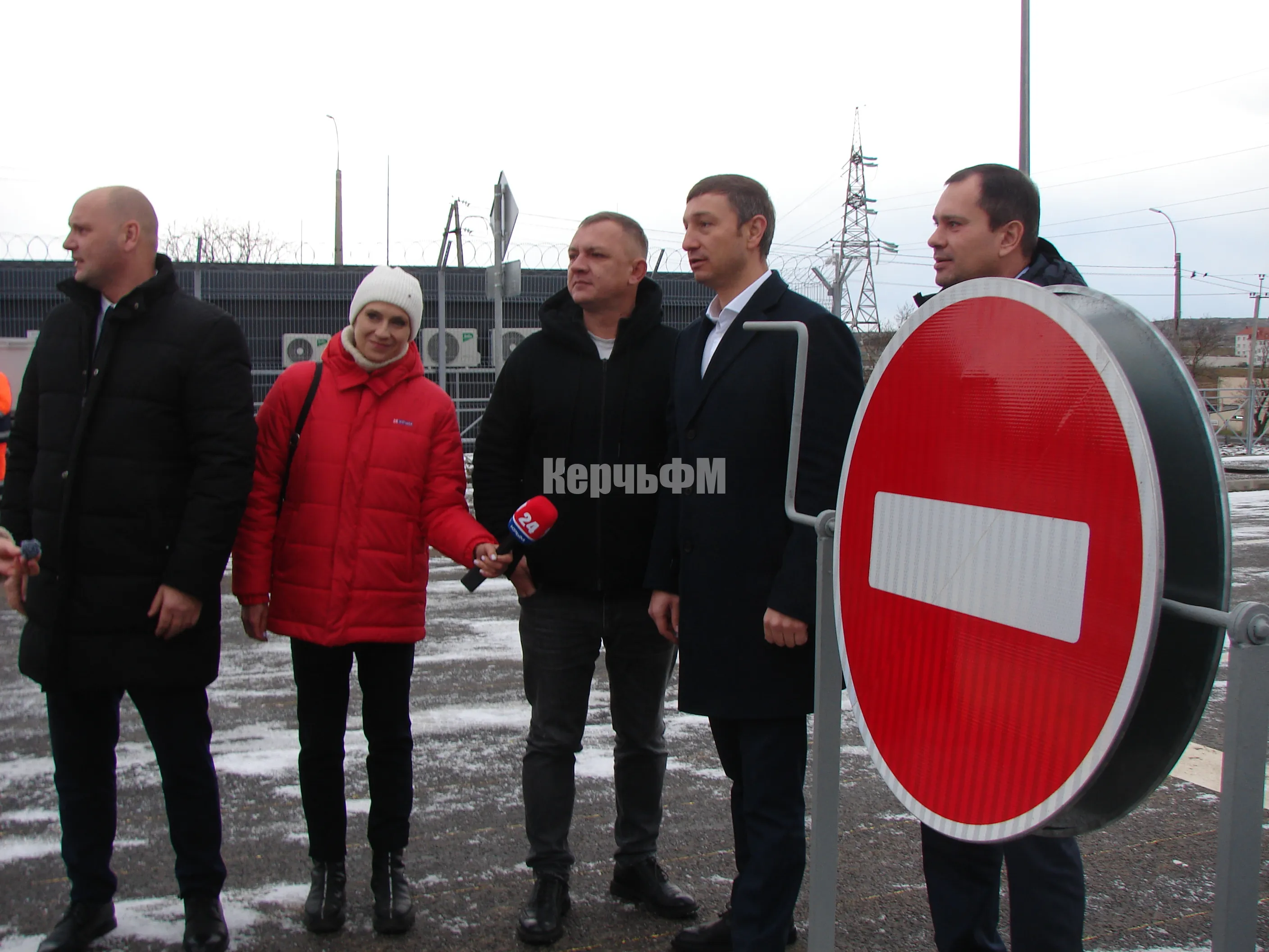 Руководители Керчи вместе с министром транспорта Крыма и представителем заказчика - Службы автомобильных дорог перерезали символическую ленточку на путепроводе и открыли движение.