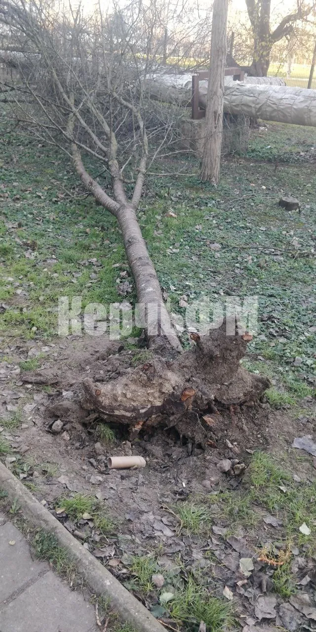 Вывернутые с корнем деревья у дома Буденного, 29 в Керчи так и не убрали