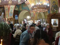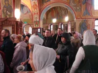 Прихожане слушают проповеди, читают молитвы, затем причащаются.