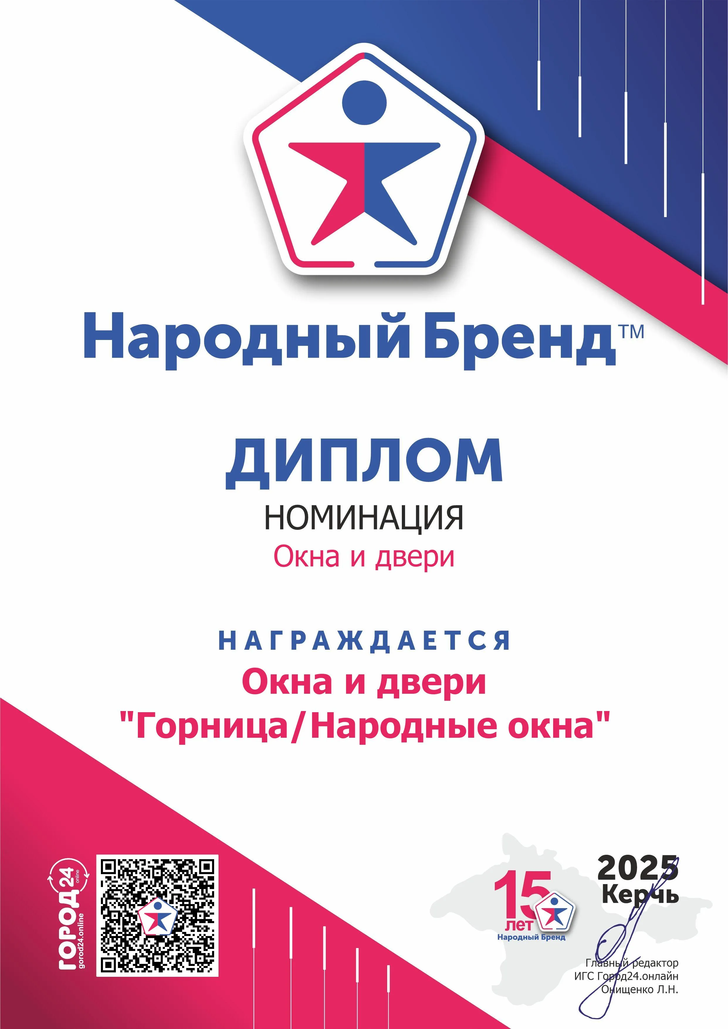 «Народные окна» - официальный представитель компании «Горница» в Керчи и победитель в номинации «Окна и двери» в конкурсе «Народный бренд»!