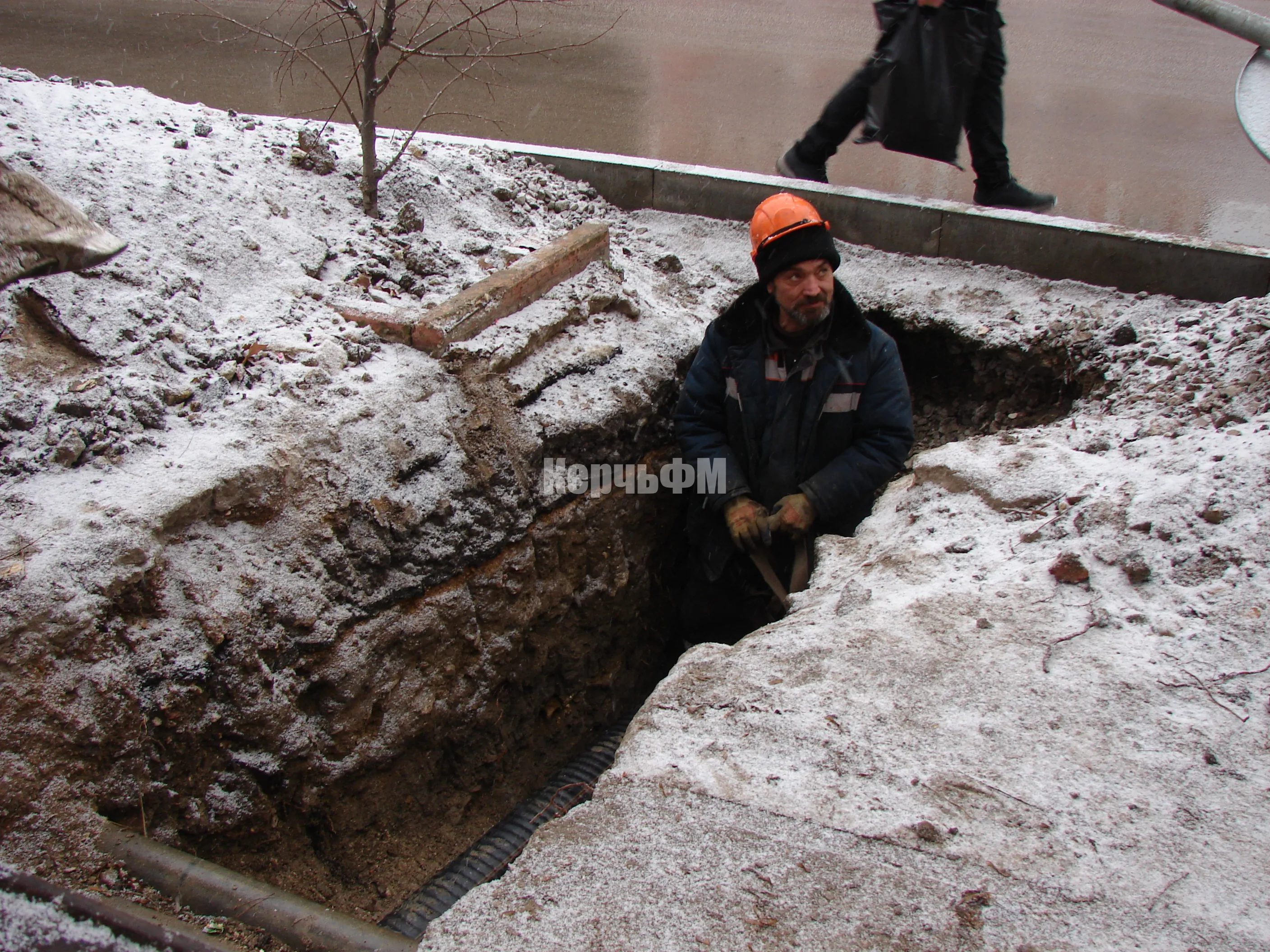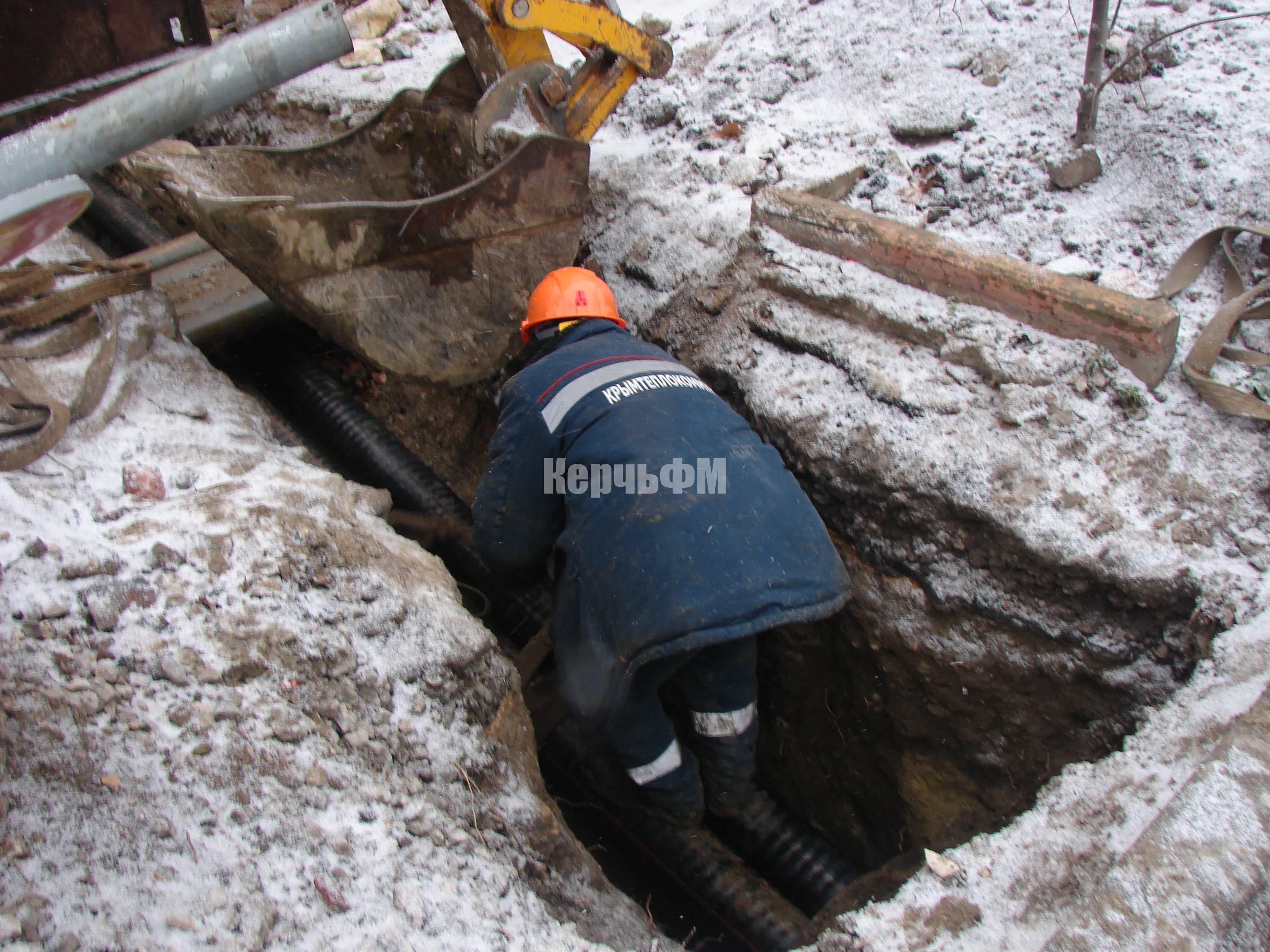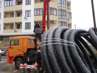 Сегодня специалисты керченского филиала предприятия "Крымтеплокоммунэнерго" тянут две трубы под автомагистралью улицы Свердлова к поликлинике.
