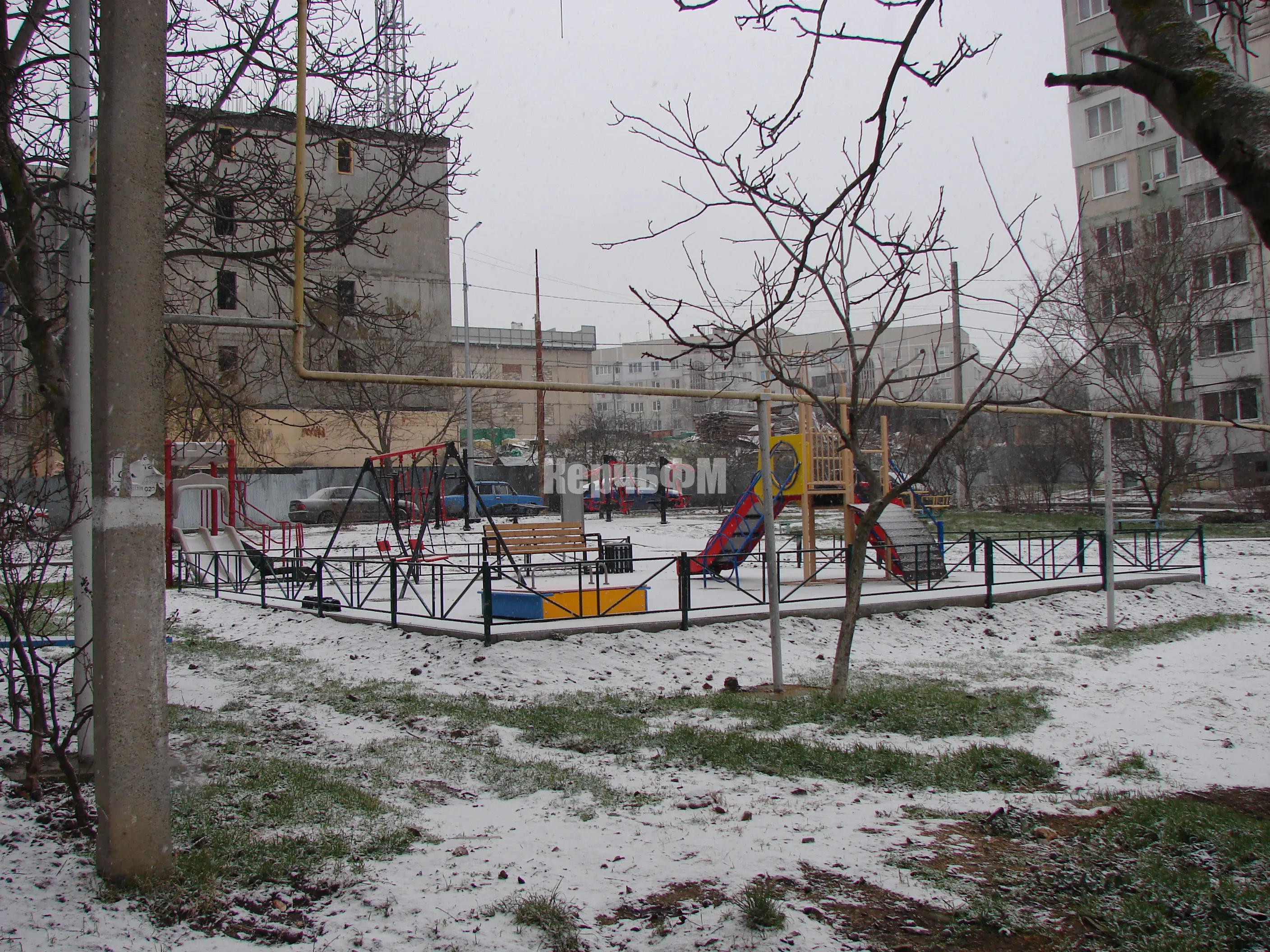 До нового года не успели только уложить на новых детских и спортивных площадках резиновое покрытие.
