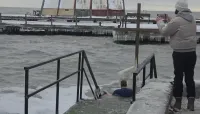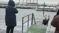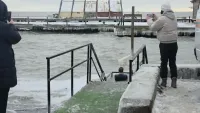 В этом году желающих окунуться на набережной немного. Для удобства горожан с лестницы убрали лёд, обеспечив безопасный и комфортный проход к воде. Для участников купаний установлена палатка для переодевания, где также предлагают горячий чай.