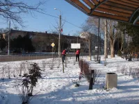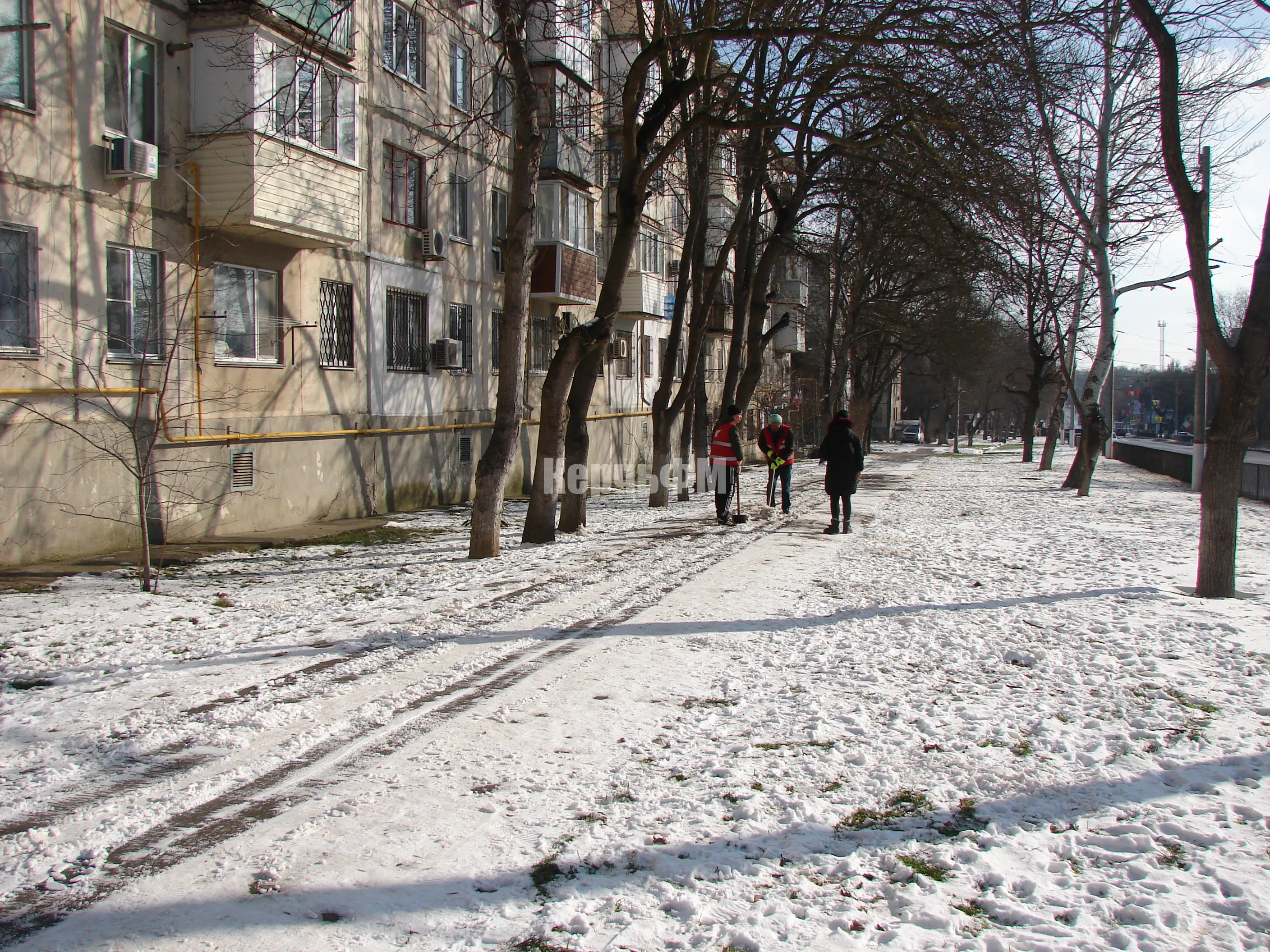 Сегодня в Керчи слегка потеплело и кое-где снег уже сошел сам.