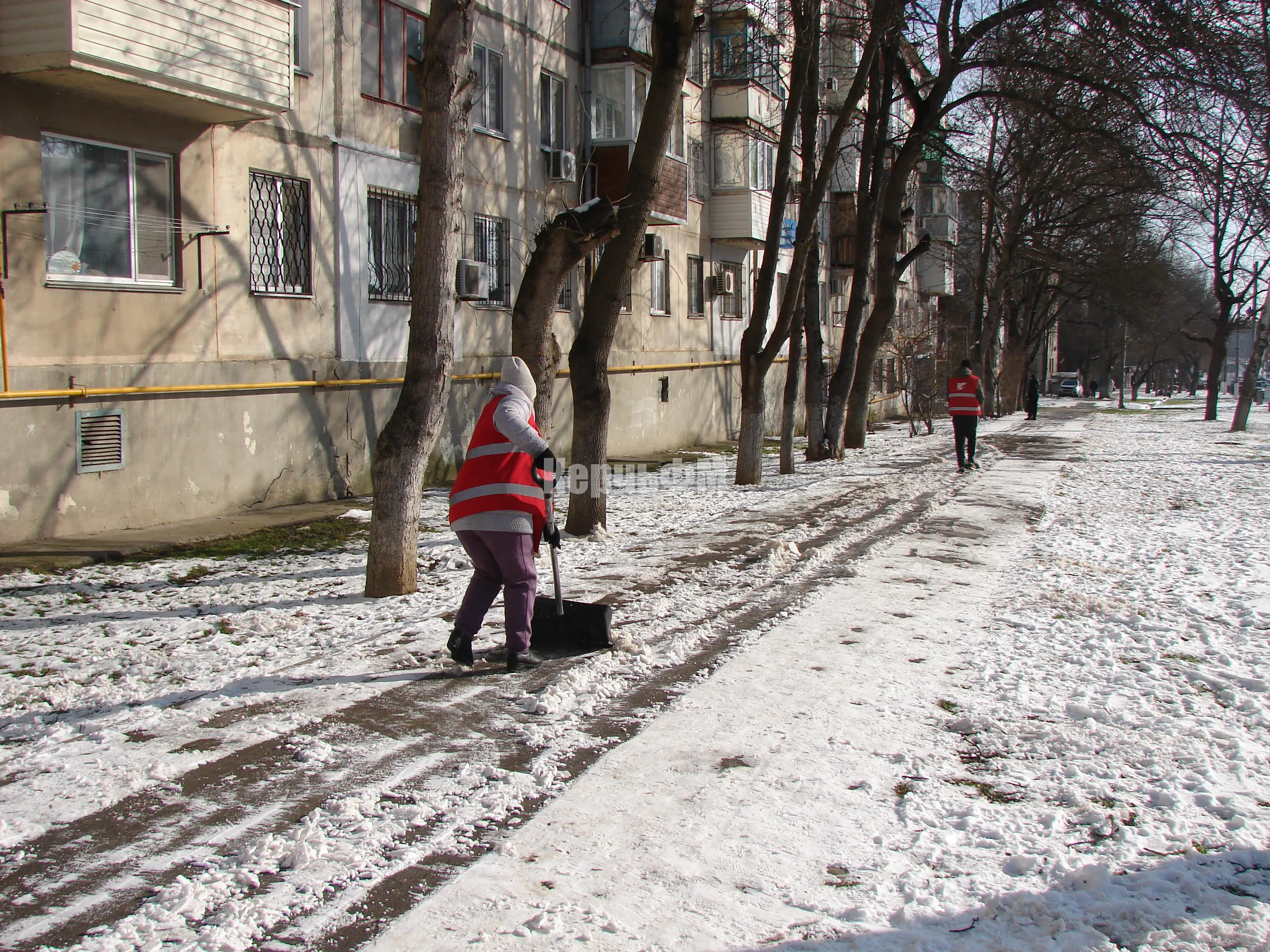 Коммунальные службы сменили метла на лопаты и продолжают борьбу с заснеженными тротуарами.