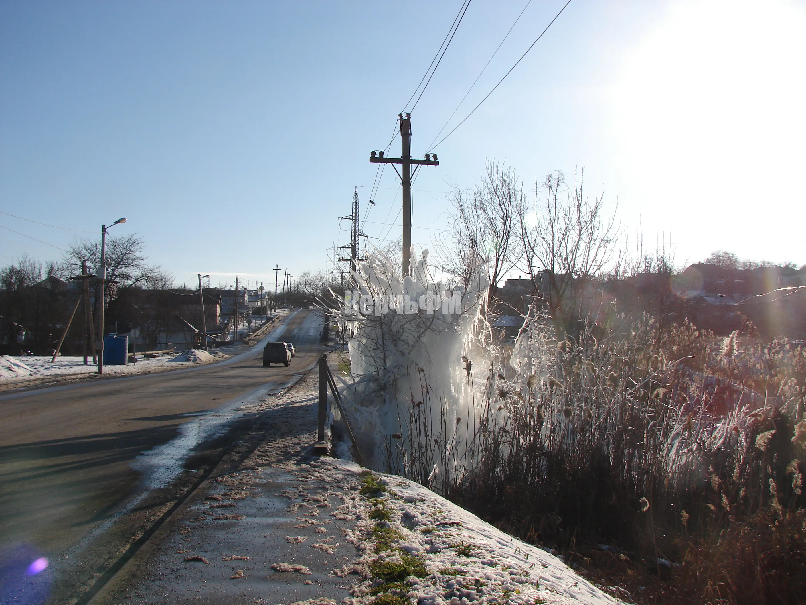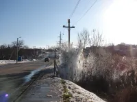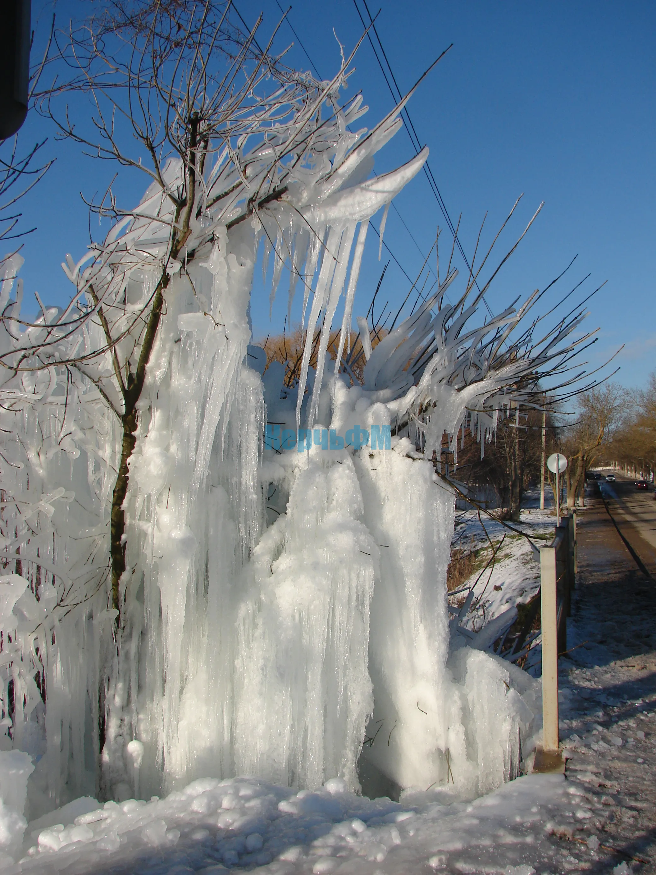 Красивый ледник образовал прорыв водовода в Керчи в районе улицы Годыны