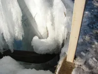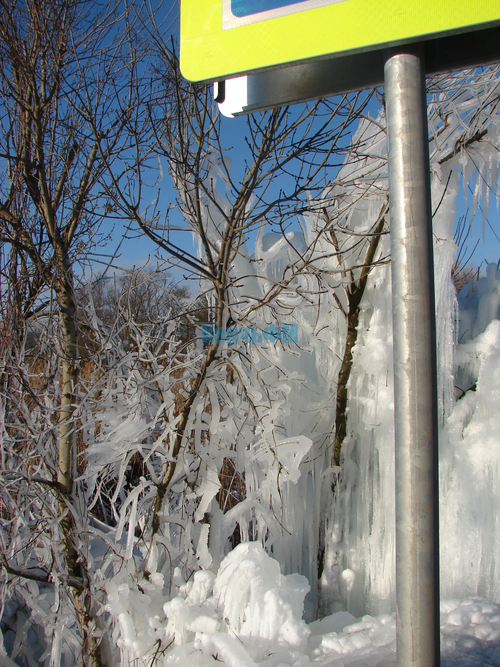 Необычной красоты ледник образовался сегодня над речкой Мелек-Чесме в районе улицы Годыны.